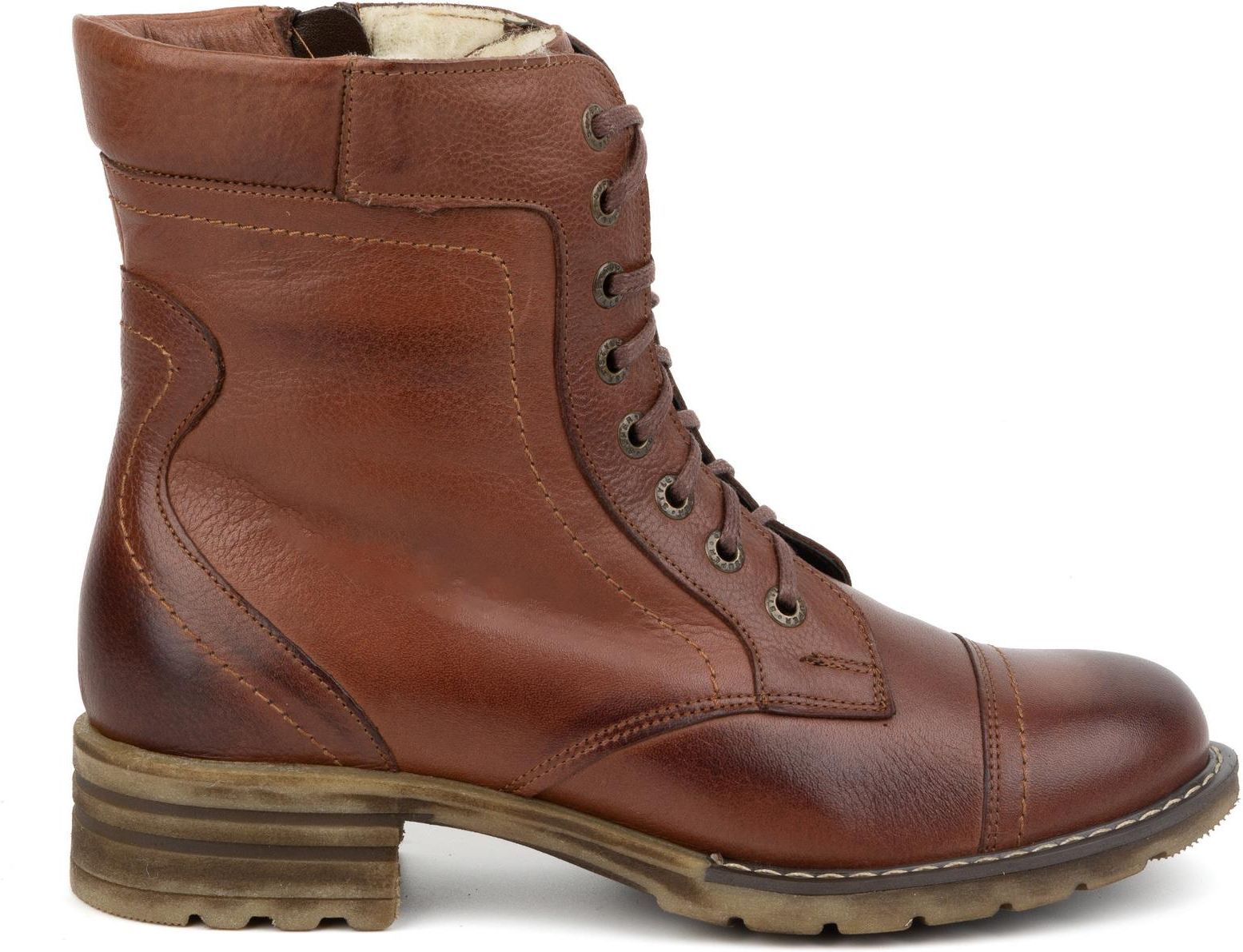 Botki skórzane damskie trzewiki ocieplane zimowe 226BB brązowe Łosice