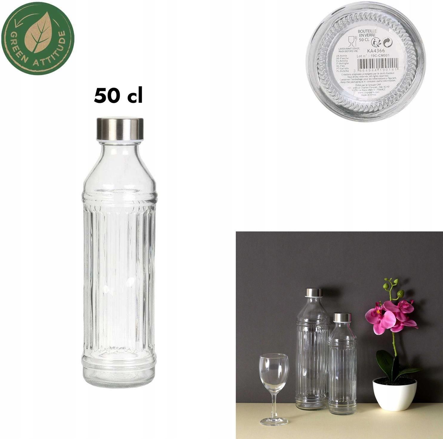 Butelka na wodę, soki. ✅Poręczna- 6,5cm x 24cm o pojemność 500ml ✅Szczelna - korek wyposażony w uszczelkę ✅Szklana - wykonana z wysokiej jakości grubego szkła ✅Przyjazna dla zdrowia i środowiska - wybierając wielorazowe szklane butelki nie zaśmiecasz środowiska plastikowymi odpadami. Jednocześnie zmniejszasz ilość szkodliwych mikro i nanoplastików w swoich posiłkach. Cechy: Wymiary - 6,5cm x 24cm Materiał - szkło, metal + tworzywo sztuczne (zakrętka) Pojemność - 0,5L