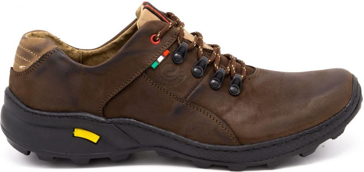 Buty męskie trekkingowe skórzane sznurowane POLSKIE 296GT brązowe Buty męskie skórzane 296GT w stylu trekkingowym. ✅Cholewka wykonana ze skóry naturalnej. ✅Wnętrze w tym modelu butów zostało wykończone skórą naturalną. Taka wyściółka korzystnie wpływa na wentylację obuwia. ✅Podeszwę tych solidnych butów wykonano z wysokogatunkowego tworzywa. Dzięki temu są przystosowane do niekorzystnych warunków atmosferycznych. Outdoorowy design sprawia, że buty dobrze sprawdzają się na co dzień. Jest to propozycja dla Panów lubiących aktywny tryb życia, ale także ceniących komfort na co dzień. Buty sznurowane 296GT są szyte i klejone co zwiększa ich wytrzymałość. PRODUKT POLSKI! Kolor: brązowy Materiał: Skóra naturalna Materiał wewnętrzny: Skóra naturalna Zapięcie: Sznurowane Podeszwa: Wysokogatunkowe tworzywo Sposób wykonania: Szyte, Klejone Typ: Casual Tęgość: G Gatunek: I Konserwacja: Pasty do skór licowych, Tłuszcze do konserwacji typu Mink Oil Tabela rozmiarów: Rozmiar 40 - wkładka: 26,5 cm Rozmiar 41 - wkładka: 27 cm Rozmiar 42 - wkładka: 28 cm Rozmiar 43 - wkładka: 28,5 cm Rozmiar 44 - wkładka: 29 cm Rozmiar 45 - wkładka: 30 cm