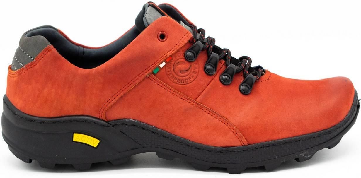 Buty męskie trekkingowe skórzane sznurowane POLSKIE 296GT czerwone Buty męskie skórzane 296GT w stylu trekkingowym. ✅Cholewka wykonana ze skóry naturalnej. ✅Wnętrze w tym modelu butów zostało wykończone skórą naturalną. Taka wyściółka korzystnie wpływa na wentylację obuwia. ✅Podeszwę tych solidnych butów wykonano z wysokogatunkowego tworzywa. Dzięki temu są przystosowane do niekorzystnych warunków atmosferycznych. Outdoorowy design sprawia, że buty dobrze sprawdzają się na co dzień. Jest to propozycja dla Panów lubiących aktywny tryb życia, ale także ceniących komfort na co dzień. Buty sznurowane 296GT są szyte i klejone co zwiększa ich wytrzymałość. PRODUKT POLSKI! Kolor: czerwony Materiał: Skóra naturalna Materiał wewnętrzny: Skóra naturalna Zapięcie: Sznurowane Podeszwa: Wysokogatunkowe tworzywo Sposób wykonania: Szyte, Klejone Typ: Casual Tęgość: G Gatunek: I Konserwacja: Pasty do skór licowych, Tłuszcze do konserwacji typu Mink Oil Tabela rozmiarów: Rozmiar 40 - wkładka: 26,5 cm Rozmiar 41 - wkładka: 27 cm Rozmiar 42 - wkładka: 28 cm Rozmiar 43 - wkładka: 28,5 cm Rozmiar 44 - wkładka: 29 cm Rozmiar 45 - wkładka: 30 cm