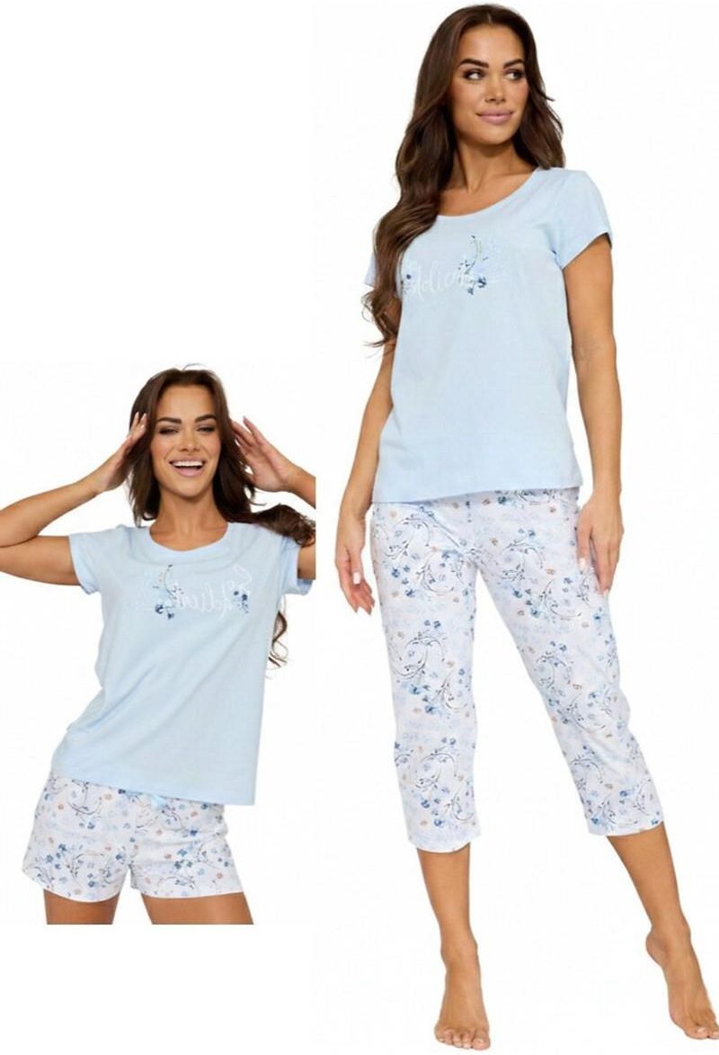 Piżama damska SO DELICATE 3-PACK to wyjątkowy, trzyczęściowy komplet stworzony z myślą o kobietach ceniących wygodę, wysoką jakość oraz subtelną elegancję. Wykonana w 100% z wysokogatunkowej bawełny, jest miękka, przewiewna i niezwykle przyjemna w dotyku, zapewniając komfortowy sen o każdej porze roku. W zestawie znajduje się koszulka z krótkim rękawem ozdobiona delikatnym nadrukiem na piersi oraz dwie pary spodni – krótkie oraz rybaczki – co pozwala dopasować komplet do aktualnych potrzeb i temperatury. Uroczy wzór w kwiatuszki oraz satynowa kokardka w pasie dodają piżamie kobiecego, romantycznego charakteru. Całość zapakowana jest w eleganckie pudełko, dzięki czemu komplet idealnie sprawdzi się również jako prezent.
