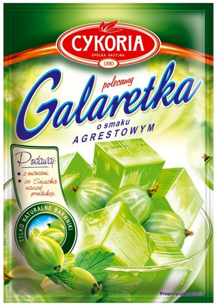 Cykoria Galaretka O Smaku Agrestowym 75 G ❤️ CYKORIA ❤️ ✔️ Gwarancja wysokiej jakości od 1880 roku podawaj: z owocami, ze Śnieżką naszej produkcji ✔️ Sposób przechowywania: Przechowywać w temperaturze otoczeniaSposób użycia: Sposób przyrządzania:1. Zagotować wodę i odmierzyć ½ litra (500 ml).2. …