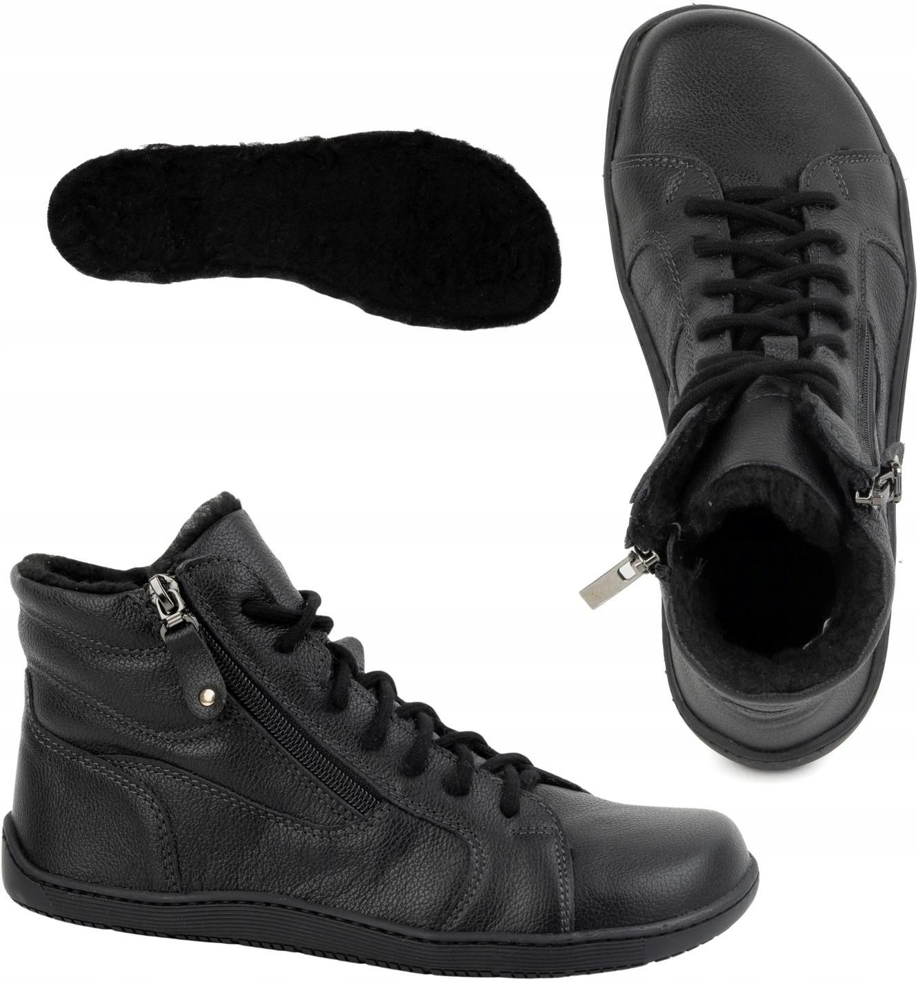 Damskie Barefoot buty skórzane zimowe sznurowane zamek 1261GRO czarne 38 Łosice