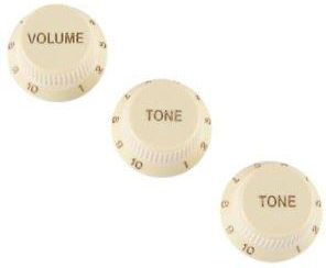 Fender Stratocaster Soft Touch Knobs, Aged White Ten zestaw trzech miękkich w dotyku pokręteł sterujących, zastosowany w modelu American Elite Stratocaster, jest przeznaczony do potencjometrów z dzielonym wałkiem 1/4" stosowanych w prawie wszystkich modelach Stratocaster produkowanych w Stanach Zjednoczonych i Meksyku od 1954 roku do chwili obecnej. Te łatwe w uchwycie pokrętła sprawiają, że regulacja głośności i tonu w trakcie gry jest dziecinnie prosta.
