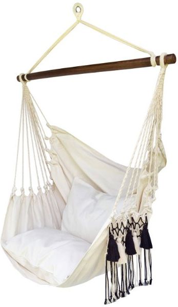 Fotel hamakowy, ecru HC10-OW-B (Fotele hamakowe) Fotel hamakowy jest bardzo komfortowy w użytkowaniu. Dzięki pięknym, długim frędzlom w stylu boho, będzie ozdobą każdego miejsca. Wykonany jest z ręcznie plecionego materiału z najwyższej jakości grubej bawełny. Sznurki, które podtrzymują całą konstrukcję są niezwykle wytrzymałe. Drążek fotela wykonany jest z impregnowanegodrewna, zabezpieczonego przed działaniem czynników zewnętrznych. Do zamontowania fotela potrzebny jest tylko jeden hak, który mocuje się w suficie lub drewnianej belce. Produkt wyróżniaja się wysoką jakością wykonania, która widoczna jest już na pierwszy rzut oka. Zastosowanie starannie dobranych materiałów oraz dbałość o każdy detal sprawiają, że łączy w sobie trwałość, estetykę i komfort użytkowania. Dzięki precyzyjnemu wykonaniu oraz solidnym wykończeniom, produkt zachowuje swój wygląd i funkcjonalność przez długi czas. Producent przykłada dużą wagę do jakości użytych tkanin, mocowań i szwów, co przekłada się na odporność na codzienne użytkowanie oraz czynniki zewnętrzne. Połączenie estetycznego wzornictwa z trwałością i wygodą sprawia, że asortyment spełnia oczekiwania nawet najbardziej wymagających użytkowników, ceniących sobie zarówno komfort, jak i solidne wykonanie.