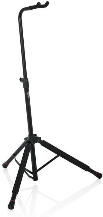 Gator Frameworks Single Guitar Stand Hanging GFW-GTR-1200 Frameworks Hanging Style pojedynczy statyw gitarowy ze stałym jarzmem i przyjazną dla użytkownika gumową podkładką. Cechy Regulowany stojak (35" - 40") pasuje do jednej gitary elektrycznej lub akustycznej Wytrzymała konstrukcja z rur stalowych jest zarówno lekka jak i trwała Trwałe ograniczenie szyi kolebki dla bezpiecznego dopasowania Gumowana wyściółka chroni wykończenie gitary przed zarysowaniami Wykończenie matowe czarne płynnie łączy się z tłem