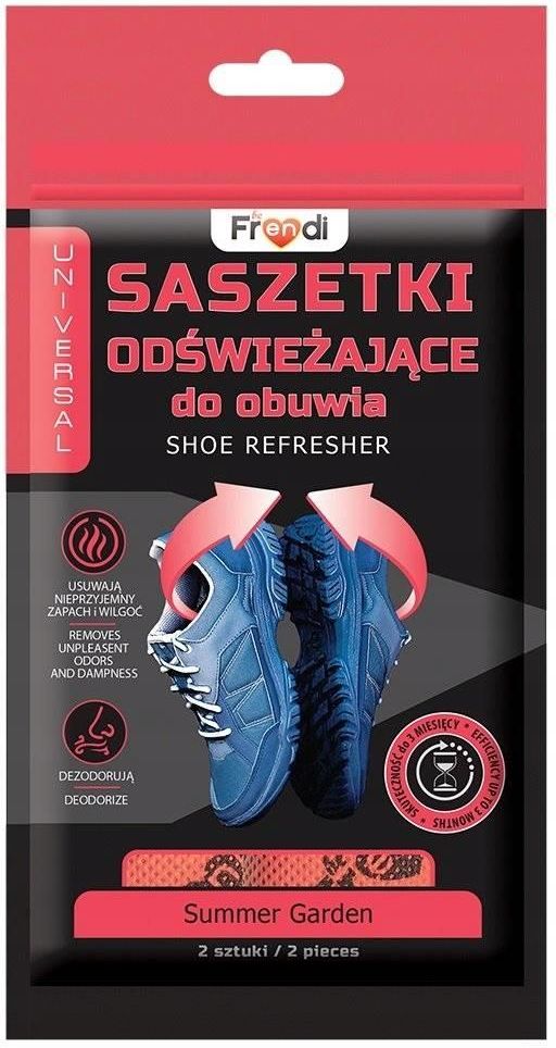 Saszetki odświeżające do obuwia beFrendi Summer Garden Przywróć butom świeży i przyjemny zapach Saszetki odświeżające do obuwia beFrendi, to doskonały sposób, aby cieszyć się ich przyjemnym zapachem przez długi czas. Pocenie się stóp to naturalny i fizjologiczny proces, wynikający z usytuowania na nich sporej ilości gruczołów potowych. Towarzyszy nam w różnych sytuacjach w ciągu dnia – w trakcie uprawiania sportu, gdy się stresujemy, a także w bardziej upalne dni. Efektem tego procesu jest problem ze świeżością obuwia. Pot wnika w wewnętrzną powierzchnię buta, gdzie następuje rozwój bakterii i grzybów, które są przyczyną nieprzyjemnego zapachu. Oprócz walorów estetycznych prowadzi to również do wielu chorób jak np. grzybica stóp. Dlatego ze względów estetycznych i higienicznych zaleca się odpowiednio pielęgnować obuwie. Jednym ze sposobów jest stosowanie saszetek pochłaniających wilgoć i nieprzyjemny zapach. Jak odświeżyć buty? Doskonałym rozwiązaniem są saszetki odświeżające do obuwia beFrendi. zastosowany minerał absorbuje wilgoć oraz wykazuje właściwości bakteriostatyczne użyta kompozycja zapachowa nadaje przyjemny zapach produkt uniwersalny – do wszystkich rodzajów i rozmiarów obuwia, także sportowego, w tym do butów narciarskich minimum 95% to składniki naturalne. Zapach Summer Garden to wspaniały zapach kwiatów i owoców. Począwszy od żurawiny, granatu, jabłka, poprzez kwiatowe nuty fiołka i jaśminu po waniliowe akcenty. To idealna propozycja dla lubiących słodkie i wyraziste zapachy. Skład surowcowy (Summer garden) Naturalne glinokrzemiany, kompozycja zapachowa. Zawiera: heksyl salicylan, ɑ-heksylcinnamaldehyde, (R)-p-menta-1,8-dien i 2(4-tert-butylobenzylo) propionaldehydu. Może powodować wystąpienie reakcji alergicznej. H412 Działa szkodliwie na organizmy wodne, powodując długotrwałe skutki. P273 Unikać uwolnienia do środowiska. Metody usuwania produktu: usuwanie zgodnie z lokalnymi przepisami. Małe ilości można usunąć za pomocą domowych śmieci. Mechanizm działania saszetek przepuszczalna włóknina uwalniające się cząstki kompozycji zapachowej sorbent mineralny absorbujący wilgoć i nieprzyjemny zapach Jak stosować? w opakowaniu znajdują się dwie saszetki, które po wyjęciu należy umieścić w butach zaleca się pozostawienie saszetek w obuwiu przynajmniej na całą noc. saszetki można używać wielokrotnie, a ich okres skuteczności wynosi do 3 miesięcy. produkt doskonale sprawdzi się także w celu utrzymania świeżości i suchości obuwia, które przechowywane jest po sezonowo. Aby kolejny sezon rozpocząć w pachnącym obuwiu. Saszetki odświeżające do obuwia beFrendi, to doskonały sposób, aby cieszyć się ich przyjemnym zapachem przez długi czas. Sprawdź rodzaje saszetek beFrendi