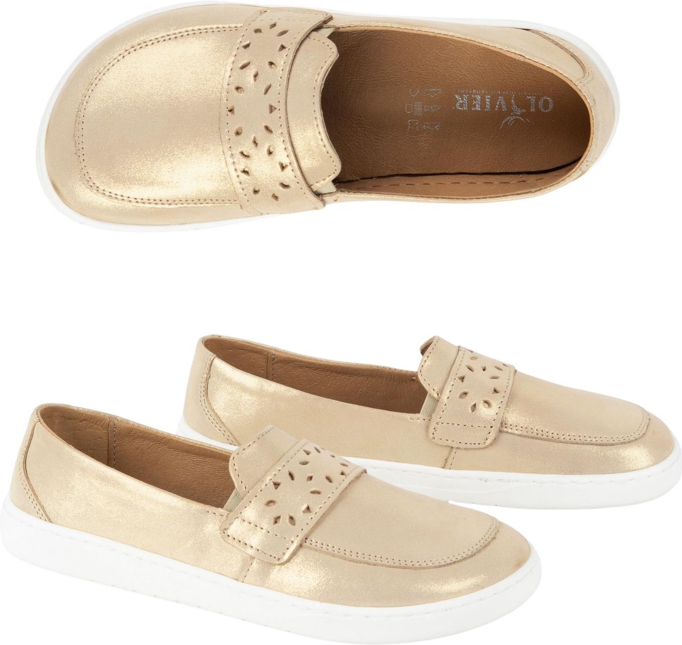 Mokasyny damskie barefoot Inga z szerokim przodem POLSKIE złote Łosice