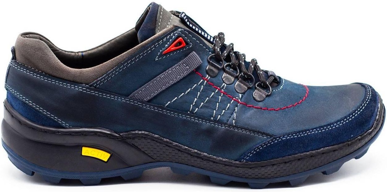 Męskie buty trekkingowe 274GT granatowe Buty męskie o trekkingowym kroju to codzienny komfort dla mężczyzn, którzy lubią wygodne obuwie, ale jednocześnie chcą, żeby obuwie świetnie się prezentowało. Te buty męskie wykonane są na zewnątrz z licowej skóry naturalnej, łatwej do utrzymania jej w idealnej czystości. Wewnętrzna wkładka także jest ze skóry naturalnej. Dzięki temu zachowana jest właściwa cyrkulacja powietrza. Te buty męskie to idealny wybór na co dzień.Buty męskie wykonane ze skóry dostępne są w kilku modnych kolorach. Ich ciekawym urozmaiceniem są kontrastowe paski. Elastyczna podeszwa sprawia, że ich noszenie jest bardzo komfortowe, a buty dopasowują się do kształtu stopy. Można je nosić na przykład z jeansami. Są idealnym wyborem na wiosnę i jesień, ale także na lato. Lekkie, sznurowane buty mogą być elementem wyprawowych stylizacji. Wykonane przez polskiego producenta buty męskie są znakomitej jakości. Przy odpowiedniej pielęgnacji zachowują swoją urodę na długi czas. Kolor: Granat Materiał zewnętrzny: Skóra naturalna Materiał wewnętrzny: Skóra naturalna Zapięcie: Sznurowane Podeszwa: Kauczuk termoplastyczny Sposób wykonania: Szyte, Klejone Typ: Casual Tęgość: G Gatunek: I Tabela rozmiarów: Rozmiar 40 - wkładka: 26,5 cm Rozmiar 41 - wkładka: 27 cm Rozmiar 42 - wkładka: 28 cm Rozmiar 43 - wkładka: 28,5 cm Rozmiar 44 - wkładka: 29 cm Rozmiar 45 - wkładka: 30 cm