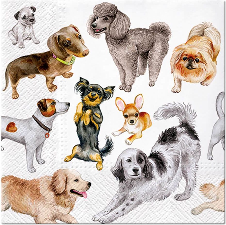 Serwetki papierowe "Pieski" - 20 sztuk Serwetki "Pieski" Materiał : papier Nadruk : Psy Wielkość: 33x33 cm Ilość: 20 sztuk Idealne do dekoracji stołu podczas przyjęcia. Pięknie będą komponować się z kubeczkami oraz talerzykami