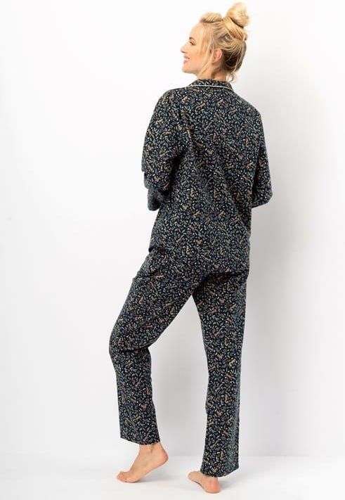 Klasyczna piżama damska wysokiej jakości miękka flanela jesienny wzór w wiewiórki bluza z długim rękawem z kołnierzykiem, zapinana na guziki na piersi naszyta kieszonka w komplecie długie spodnie prosty, luźny krój nogawki na biodrach kieszenie w pasie gumka obszyta bawełną pakowana w foliowy worek Skład: 100% bawełna