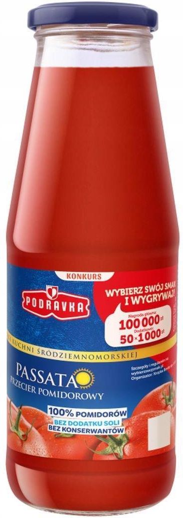Podravka Passata Przecier Pomidorowy 680 G ❤️ PODRAVKA ❤️ ✔️ Zastosowanie: do tradycyjnej domowej zupy pomidorowej i zupy pomidorowej krem, do sosów, do dań z makaronu i ryżu, do dań mięsnych i warzywnych, a także do gołąbków, pizzy, zapiekanek i wielu innych dań. PodravkaSmaki kuchni …