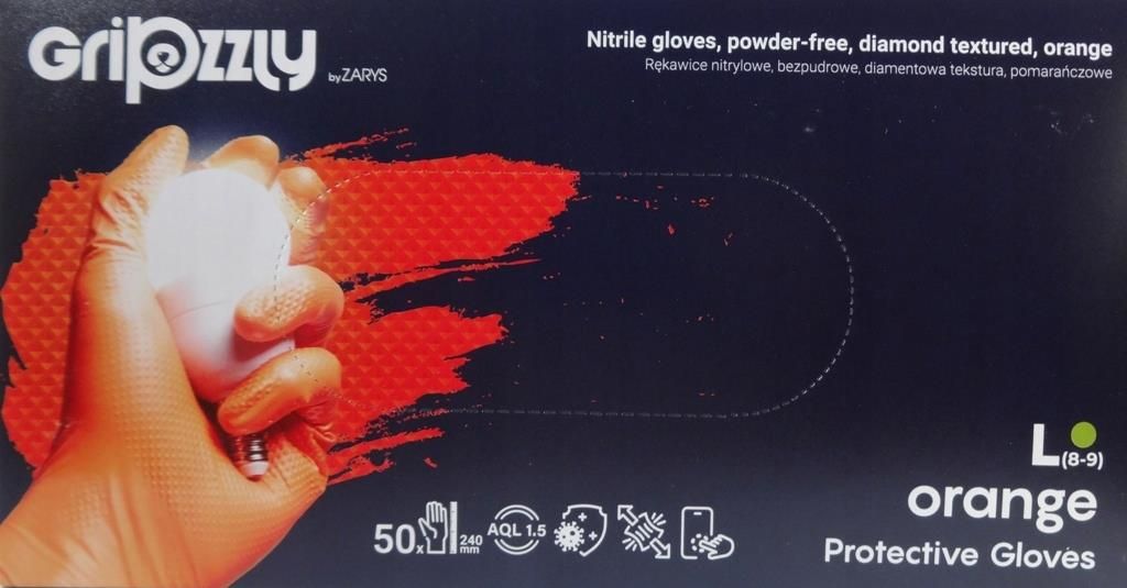 Rękawice Nitrylowe Mocne Pomarańcz Gripzzly L Łosice
