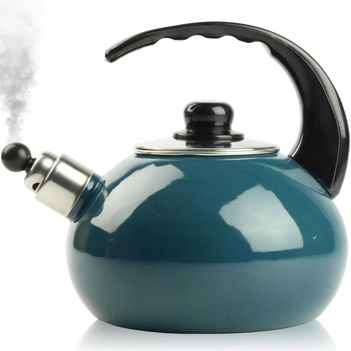 Czajnik emaliowany SILESIA EMALIA - Tradycyjny design w nowoczesnym wydaniu Czajnik jest podstawowym elementem wyposażenia każdej kuchni. Choć obecnie powszechnie używane są czajniki elektryczne, ten tradycyjny czajnik na kuchenkę wciąż cieszy się dużą popularnością oraz stanowi piękną ozdobę. Wyjątkowa estetyka i solidne wykonanie Czajnik Florian dzięki swojej baryłkowatej formie i żywej kolorystyce idealnie współgra zarówno z klasycznym, jak i bardzo nowoczesnym wystrojem. Wykonany został z wysokiej jakości stali węglowej oraz obustronnie pokryty szczelną warstwą emalii. Rant zabezpieczony nierdzewną obręczą. Czajnik wyposażony w rączkę wykonaną z czarnego tworzywa sztucznego, które jest materiałem odpornym na wysokie temperatury. Dzięki temu bez obaw można go przenosić z dopiero co zagotowaną wodą, nie parząc sobie rąk. Nalewanie do środka wody ułatwia zdejmowana, wciskana na rant stalowa pokrywka w kolorze czajnika z poręczną gałką. Zdejmowany gwizdek nie pozwoli zapomnieć o gotującej się wodzie. Z czajnika można korzystać na wszystkich rodzajach kuchenek: gazowych, elektrycznych, ceramicznych i indukcyjnych. Specyfikacja Pojemność: 2,5 l Materiał : stal emaliowana Kolor: niebieski Długość: 25 cm Wysokość: 22 cm Waga produktu: 970 g Czyszczenie: Zalecane mycie ręczne Średnica dna: 15 cm Średnica otworu : 10 cm Funkcjonalność i bezpieczeństwo Duża pojemność czajnika wynosząca 2,5 l świetnie sprawdzi się w codzienności dużych rodzin. Pozwoli zagotować wodę do przyrządzenia gorącego napoju dla 6-7 osób. Emaliowana powłoka ma wiele zalet m.in. jest bezpieczna w kontakcie z żywnością, trwała, odporna na zarysowania, wysokie temperatury i zabezpiecza naczynia przed rdzą. Emalia nie wchodzi w reakcję z gotowaną w czajniku wodą, nie zmienia jej smaku i zapachu, a do tego jest antyalergiczna. To ogromny atut czajników emaliowanych, a dzięki idealnej gładkości emalia jest łatwa w czyszczeniu i bardzo higieniczna - nie zatrzymuje zabrudzeń i drobnoustrojów na powierzchni. Kupując na naszej aukcji, nabywasz produkty bezpośrednio od dystrybutora marki! Gwarantujemy najwyższą jakość i pełne bezpieczeństwo.