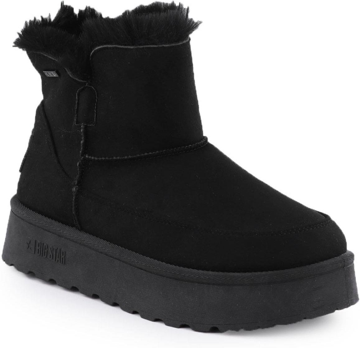Śniegowce wodoodporne Big Star W Właściwości Modne śniegowce to propozycja od marki Big Star. Buty posiadają grubą podeszwę izolującą od zimna. Wykonane są z wysokojakościowej zamszowej skóry ekologicznej z membraną TEX, która zapewnia wzmożoną odporność na przemakanie. Modny model na platformie idealny juz od pierwszych chłodnych dni