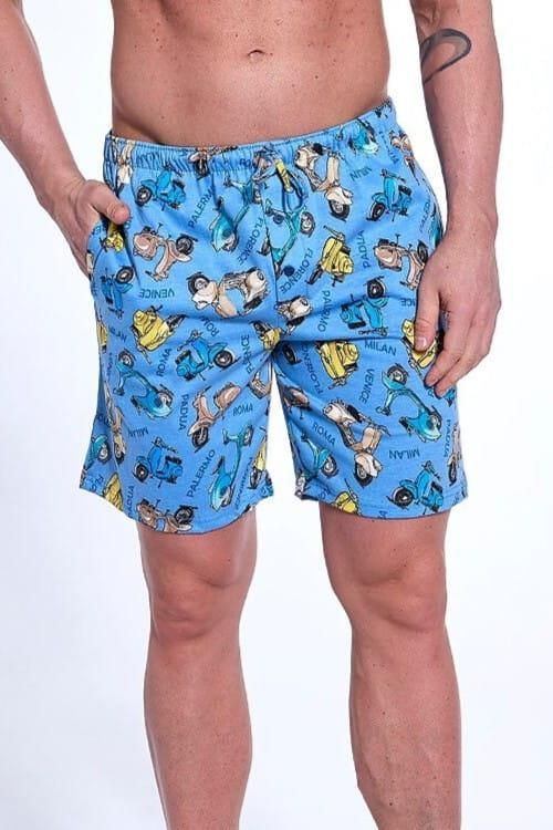 Spodnie męskie do piżamy Cornette 698/24 [Rozmiar L] 5902458258338 Spodnie męskie krótkie piżamowe marki Cornette model 698/24 w niebieskim kolorze. Cechy charakterystyczne: -wzór w skutery -regulowany obwód -wysokiej jakości bawełna -kieszenie po bokach -wykonane z bawełny Skład: 100% bawełna …