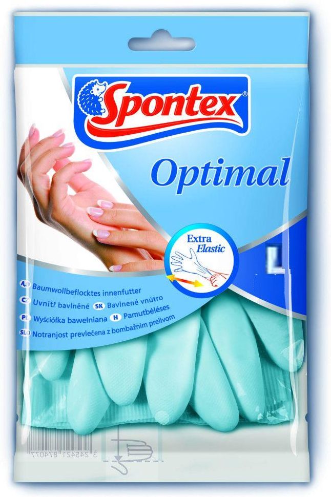 RĘKAWICE OPTIMAL GLOVES LARGE L 114088 SPONTEX Rękawice z bawełnianą wyściółką. Dzięki wewnętrznej mikrowarstwie z bawełny rękawice zapewniają uczucie komfortu oraz gwarantują pewny uchwyt. Pozwalają ochronić dłonie przed szkodliwym działaniem środków czyszczących. 100% naturalnego lateksu. Rozmiar: L