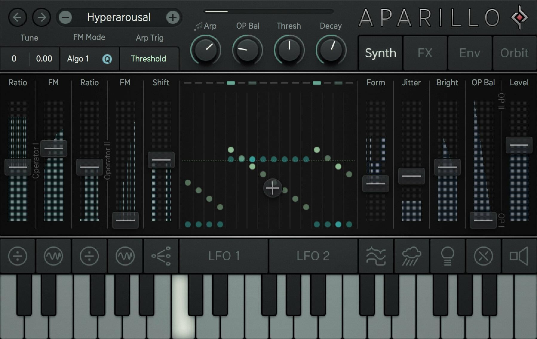 To jest automatyczne tłumaczenie wygenerowane przez software:Aparillo to wyjątkowa odmiana syntezatora, która dostarczy potężnych dźwięków teksturalnych i organicznych, wydobytych bezpośrednio z mikrobiotyki syntezy. Aparillo bazuje na dwóch współdziałających ze sobą syntezatorach FM, zdolnych do tworzenia najbardziej złożonych barw. Generator sygnału został wzbogacony o subtelne przyprawy DSP, takie jak Jitter, Brightness i Formant/Waveshaping, po których następuje filtr swobodnego przepływu sygnału/przestrzenny grzebień, przechodzący w polifoniczny Auto Pan, obowiązkowy Delay i nasz najlepszy dotychczas algorytm Reverb. Syntezator jest w większości 16-głosowy unisono, co oznacza, że możesz grać jedną nutę na raz, składający się z 16 oddzielnych głosów syntezatora. W połączeniu z polifonicznym podwójnym LFO, który obejmuje również FM, daje to złożone dźwięki, zarówno atonalne, jak i superharmoniczne, ponieważ jest tam generator skali, zdolny do najbardziej dramatycznych orkiestracji lub po prostu idealnego złotego podziału unisono. Arpeggiator dodaje kolejną warstwę do dźwięku, samodzielnie wydobywając głosy syntezatora i odtwarzając je według różnych zasad, głównie w oparciu o to, co robi LFO. A potem jest Orbit, będący makrokontrolerem całego silnika dźwiękowego jednym dotknięciem, który w końcu daje nieograniczoną kontrolę nad nowymi możliwościami manipulacji dźwiękiem. ŚCIĄGNIJ https://sugar-bytes.de/register INFORMACJE https://sugar-bytes.de/aparillos