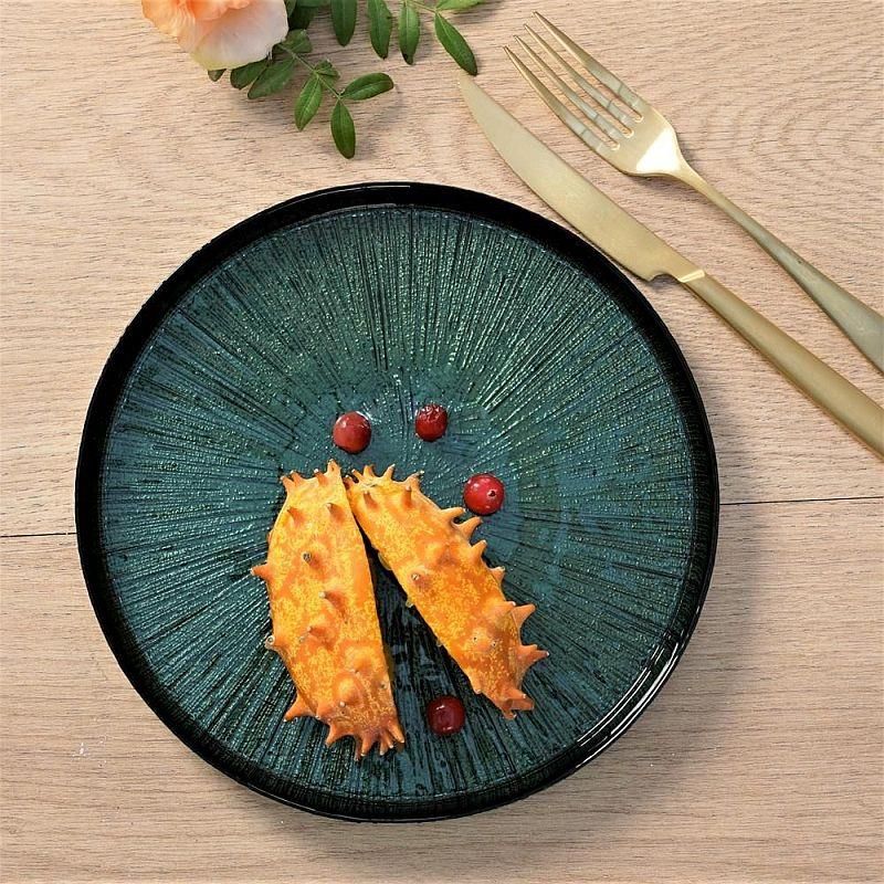 Talerzyk deserowy szklany zielony 21 Marisa Villa Marisa to linia naczyń szklanych, zachwycających prostotą formy i pięknym, ciemnym odcieniem zieleni. Cała dekoracja nakładana jest ręcznie, co jest dodatkowym walorem serii. Zielone naczynia Marisa są odpowiednie nie tylko do deserów, ale także do zimnych przekąsek, czy kanapek. Zielone talerzyki oprócz funkcji użytkowych będą efektownymi elementami aranżacji stołu. Naczynia z serii Marisa są idealne zarówno na spotkania w gronie najbliższych, jak również na wystawne przyjęcia. Talerzyki deserowe można skompletować z paterą na tort i talerzem do ciasta. Talerzyki deserowe Marisa to także doskonały pomysł na stylowy prezent. Talerzyki Marisa należy myć ręcznie. Dane techniczne: materiał: szkło kolor: zielony malowana ręcznie wymiary: średnica 21 cm zalecane mycie ręczne Villa Italia to marka wysokiej jakości porcelany stołowej, szkła, sztućców oraz innych dodatków. Porcelna projektowana jest Mediolanie, a kolekcje tworzą serwisy obiadowe i herbaciane, które wyróżnia niespotykana biel, wyjątkowo gładkie szkliwo oraz piękne wzornictwo. Jakość całości podnosi ręczne zdobienie. Produkty Villa Italia kierowane są do klientów o niebanalnym guście, ceniących sobie jakość, walory estetyczne, jak również praktyczność.