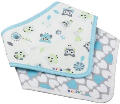 Akuku Śliniak rzep-chusteczka Tego typu śliniak zwany jest apaszką. Zestaw składa się z dwóch śliniaków w modnych wzorach. Z jednej strony posiada powierzchnię która chroni malucha przed zabrudzeniem podczas jedzenia, czy innych czynności. Z drugiej strony, posiada ładny wzór, który będzie dopełnieniem stylizacji dziecka. Śliniak posiada regulowany rzep, dzięki temu idealnie dopasujemy go do naszego dziecka. Śliniaczek wykonany jest z miękkiej 100% podwójnej bawełny.