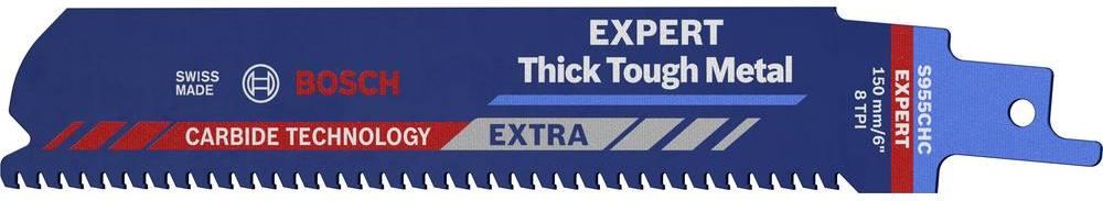 Brzeszczot EXPERT Thick Tough Metal S955CHC – Do pił szablastych. Wytrzymują do 100 razy dłużej niż brzeszczot Bosch S1122BF podczas pracy w twardym materiale Cięcie twardego metalu o dużej grubości i długi okres eksploatacji Wyjątkowa trwałość to kluczowy element technologii Bosch Carbide …