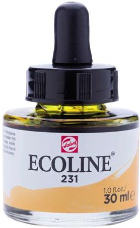 Talens Ecoline skoncentrowana farba akwarelowa w stanie płynnym pojemność: 30 ml kolor: 231 GoldOchre/złoty ochre odznacza się wspaniałą przyswajalnością do papieru akwarelowego, rysunkowego lub tektury Ecoline to wszechstronność w użyciu w połączeniu z różnego rodzaju materiałami; doskonale nadaje się do prac projektowych, do lawowania prace powinny być przechowywane z dala od światła aby zapobiec utracie kolorów doskonale sprawdza się w malarstwie akwarelowym, ale także w rysunku architektonicznym, i wszelkich technikach hobby znakomicie nadaje się do znakowania i pieczętowania produkowane 46 transparentnych kolorów oraz 2 kryjące (złoty i biały) opakowanie: kwadratowa zakręcana butelka produkt holenderskiej firmy Talens