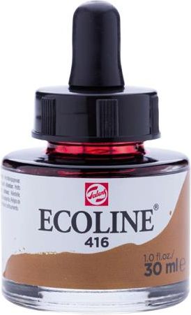 Talens Ecoline Farba Akwarel Płynna 416 Sepia Talens Ecoline skoncentrowana farba akwarelowa w stanie płynnym pojemność: 30 ml kolor: 416 Sepia odznacza się wspaniałą przyswajalnością do papieru akwarelowego, rysunkowego lub tektury Ecoline to wszechstronność w użyciu w połączeniu z różnego rodzaju materiałami; doskonale nadaje się do prac projektowych, do lawowania prace powinny być przechowywane z dala od światła aby zapobiec utracie kolorów doskonale sprawdza się w malarstwie akwarelowym, ale także w rysunku architektonicznym, i wszelkich technikach hobby znakomicie nadaje się do znakowania i pieczętowania produkowane 46 transparentnych kolorów oraz 2 kryjące (złoty i biały) opakowanie: kwadratowa zakręcana butelka produkt holenderskiej firmy Talens