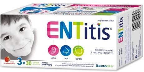 Entitis smak truskawkowy, 3 x 30 past. do ssania + Dzienniczek odporności Łowicz