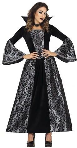 Strój Renesansowa Dama Dworu/Wampirzyca dla kobiety Zachwyć wszystkich swoim eleganckim i wszechstronnym kostiumem, który z łatwością dopasujesz do różnych okazji! Strój Renesansowej Damy Dworu/Wampirzycy to idealna propozycja na Halloween, Andrzejki, karnawał czy imprezy kostiumowe. Dzięki odpowiednim dodatkom, ten sam strój może przybrać różne, intrygujące formy. Kostium składa się z długiej, czarnej sukni ozdobionej pięknym, srebrno-czarnym wzorem, który dodaje całości wyrafinowanego charakteru. Szerokie, rozkloszowane rękawy nadają strojowi renesansowego wdzięku, tworząc wizerunek dostojnej damy dworu z dawnych czasów. Z odpowiednimi akcesoriami, będziesz wyglądać jak prawdziwa królowa z przeszłości. Czarna kolia na szyję - podkreśla dojrzały charakter stroju. Jednak to nie wszystko – ten strój równie dobrze może pełnić funkcję kostiumu wampirzycy, jeśli postawisz na bardziej mroczne dodatki. Idealnie sprawdzi się na wieczory pełne grozy i tajemnicy. Możesz także wystąpić jako czarna dama, stylowa i zagadkowa postać, która przyciągnie wzrok na każdym balu. Szukasz kostiumu na Halloween lub stroju na karnawał, który wyróżni Cię i pozwoli dopasować do różnych okazji? Strój Renesansowa Dama Dworu/Wampirzyca zapewnia Ci wiele możliwości – od historycznej elegancji po mroczną i zmysłową tajemniczość. Wybierz swój styl i bądź gwiazdą każdej imprezy! Odkryj wszechstronny Strój Renesansowej Damy Dworu/Wampirzycy, dostępny w wersji dla dziewczynek, kobiet i mężczyzn! To doskonały wybór na Halloween, karnawał czy imprezy tematyczne. Dzięki możliwości dopasowania stroju dla całej rodziny, jest to idealny pomysł na przebranie dla par i rodzin, które chcą stworzyć spójny i efektowny wygląd. Wybierz swoją wersję i zaskocz wszystkich wyjątkowym stylem!