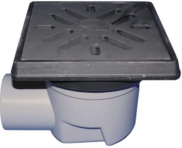 Wpust podwórzowy Perfekt DN110 z odejściem poziomym, ramą z żeliwa 260x260mm, kratką ściekową z żeliwa 226x226mm, klapą antyzapachową i koszem Studzienka podwórzowa/parkingowa. Stosowana tam gdzie nie ma konieczności/możliwości użycia kołnierzy izolacyjnych (np. beton wodoszczelny, izolacje …