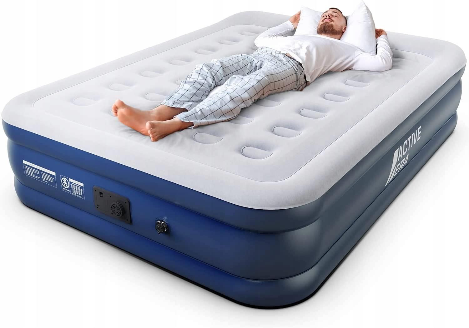 Active Era Premium dmuchane łóżko z wbudowaną pompką elektryczną i zintegrowaną wkładką, łóżko podwójne King Size, 203 x 152 x 48 cm, kolor niebieski UZYWANE-STAN B.DOBRY OPAKOWANIE OTWARTE W CELU SPRAWDZENIA PODNISZCZONE OD MAGAZYNOWANIA MOZLIWY BRAK INSTRUKCJI W JEZYKU POLSKIM PROSZE KIEROWAĆ SIE OPISEM OFERTY To łóżko dmuchane Queen Size (King, Large Queen, podwójne) firmy Active Era jest wykonane z wysokiej jakości, wytrzymałego i odpornego na przebicie. Nadmuchiwana materac posiada wbudowaną wydajną i łatwą w obsłudze elektryczną pompkę, która umożliwia nadmuchiwanie w ciągu zaledwie 3 minut i posiada dodatkową funkcję, która usuwa powietrze, aby łóżko było łatwe do przechowywania. Jest ona ponadto wyposażona w ręczny zawór powietrza, który może być używany do nadmuchiwania, jeśli nie chcesz korzystać z dołączonej pompki. Wbudowana pompka elektryczna: Wbudowana, łatwa w obsłudze pompka elektryczna zapewnia pełne napełnienie i wytrzymałość w ciągu zaledwie 3 minut Zintegrowana poduszka: zintegrowana, podniesiona poduszka służy jako podparcie głowy i karku i zapewnia komfort spania dla spokojnego snu Stała struktura: łóżko samopompujące jest wyposażone w 35 strukturalnych szpulek powietrza, które zapewniają maksymalne wsparcie i trwałość Wytrzymały materiał: Wyjątkowo gruba, wytrzymała i wodoodporna flokowana warstwa wierzchnia jest wyposażona w wielowarstwowy, odporny na przebicie materiał o grubości do 1,45 mm Łóżko podwójne (King, Large Queen): łóżko dmuchane ma wymiary 203 x 152 x 48 cm w wypełnionym i 40 x 17 x 37 cm w stanie złożonym. W zestawie znajduje się zestaw naprawczy do kopiet. Certyfikat CE. Prosimy wziąć pod uwagę: Maks. Waga osobowa tego łóżka wynosi 250 kg. Instrukcja obsługi dostępna w języku Angielskim bądź innym. SKU ACTIVE ERA AB-K1-EU (A1/10/5