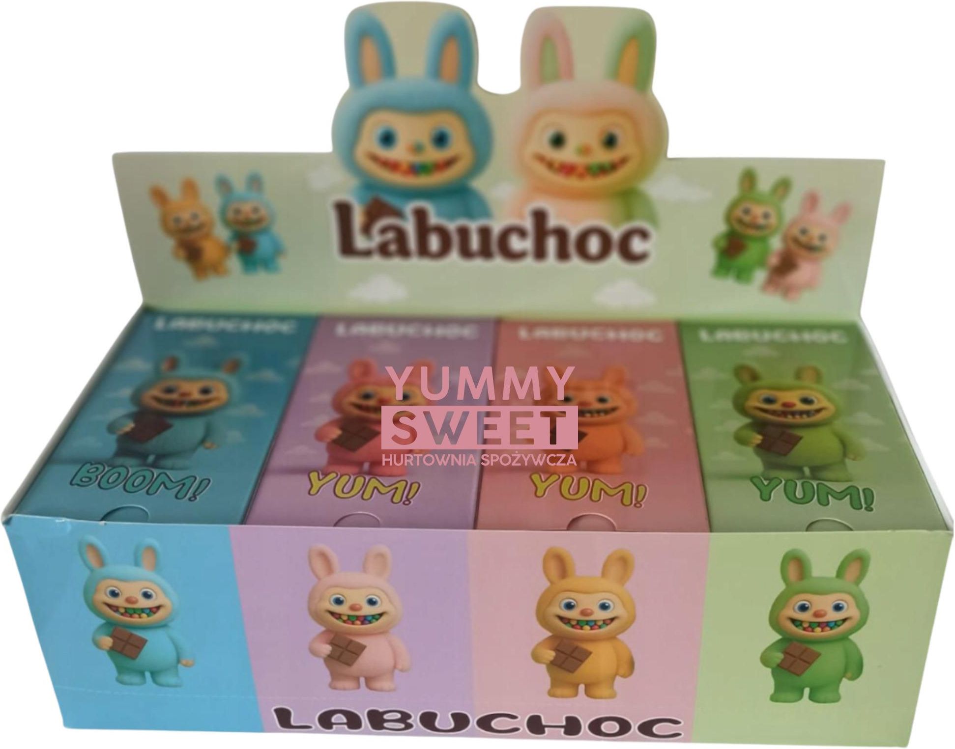 Czekolada ze strzelającym nadzieniem 1 szt. W przypadku braku informacji - smak zostanie wysłany losowo. Opakwoanie zbiorcze zawiera: 5x LABUBU Czekolada Jagodowa Labuchoc 75g 5x LABUBU Czekolada Pistacjowa Labuchoc 75g 5x LABUBU Czekolada Orzechowa Labuchoc 75g 5x LABUBU Czekolada Truskawkowa Labuchoc 75g