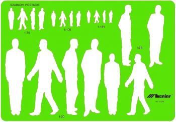 Leniar Szablon kreślarski Postacie 1:20/25/100/125 Leniar szablon z postaciami ludzkimi przedstawia różne wielkości i ustawienia postaci wykonany z przezroczystego, bardzo elastycznego tworzywo skala: 1:20 opakowanie: blister