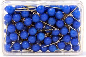 szpilki do tablic korkowych, tekstylnych wielkość: 6 x 19 mm kolor kulki szpilki: niebieskiilość 100 sztuk opakowanie: zamykane pudełko z przżroczystego tworzywa produkowane kolory kulek szpilek: żółty, niebieski, zielony i czerwony produkt niemieckiej firmy Magnetoplan