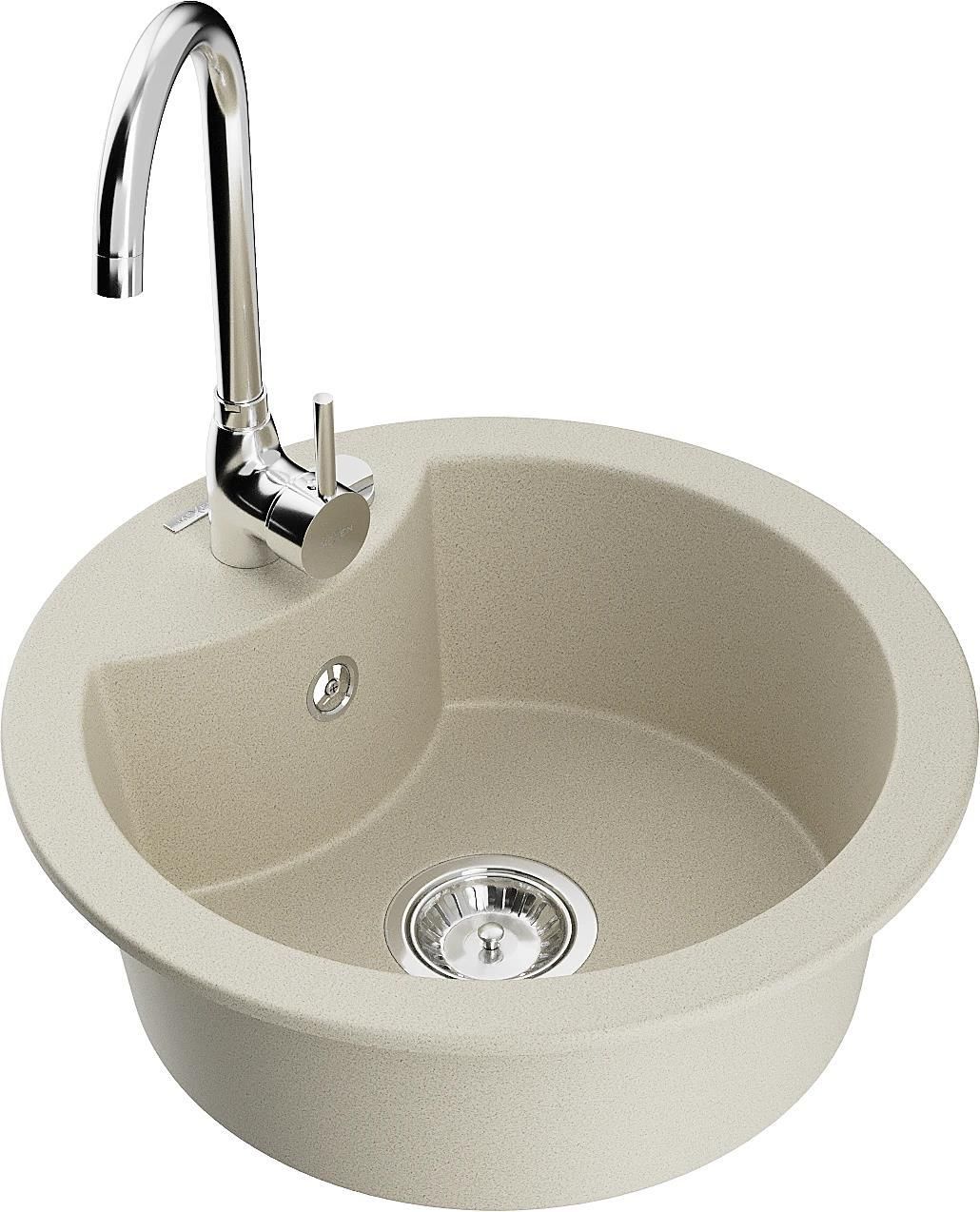 Mexen Diego zlewozmywak granitowy 1-komorowy z baterią kuchenną Telma, beżowy - 6512-69-670200-00 Dane produktu Producent: Mexen Nr katalogowy: 6512-69-670200-00 Kod EAN: 5905315015266 Cechy produktu Seria: Diego Dłuższy bok: 488 mm Krótszy bok: 488 mm Typ: Wpuszczany Kształt: Okrągły Wyciągana wylewka: Nie Wysokość baterii: 33,5 cm Zasięg wylewki: 18 cm Możliwość podłączenia filtra wody: Nie Ilość komór: 1-komorowy Otwory: 2 Podcięcia pod otwory: 1 Ociekacz: Bez ociekacza Syfon automatyczny: Tak Przelew: Tak Kolor syfonu: Chrom Kolor zlewu: Beżowy Kolor baterii: Chrom Dane techniczne: Zlewozmywak: Rozmiar: 488x488x167 mm Głębokość komory: 157 mm Szerokość komory: 406 mm Średnica odpływu: ø90 mm Typ: 1-komorowy Rodzaj: Wpuszczany w blat Kolor: Beżowy Wykończenie syfonu: Chrom Materiał: Granit (80% kruszywo granitowe 20% żywice) Otwór przelewowy: Tak Otwory: ( bateria, automat ) 2 Wysoka odporność na zarysowania i przebarwienia Odporność na szok termiczny Powierzchnia ułatwiająca czyszczenie Jeden dodatkowy podfrezowany otwór do samodzielnego wybicia ø35 Bateria kuchenna: Materiał: Mosiądz Kolor: Chrom Głowica: Ceramiczna Perlator: Tak Typ: Jednouchwytowa Wysokość baterii: 335 mm Zasięg wylewki: 180 mm Jeśli dla Ciebie, tak samo jak i dla nas, wyposażenie łazienki i toalety ma być nie tylko funkcjonalne i ułatwiające życie, ale także ma stanowić ich ozdobę – koniecznie sprawdź naszą ofertę. Jeśli zgadzasz się ze stwierdzeniem, że elegancka funkcjonalność w połączeniu z nowoczesnym designem gwarantuje atrakcyjny wygląd łazienki oraz toalety na długie lata, to trafiłeś we właściwe miejsce. Witaj w świecie MEXEN!