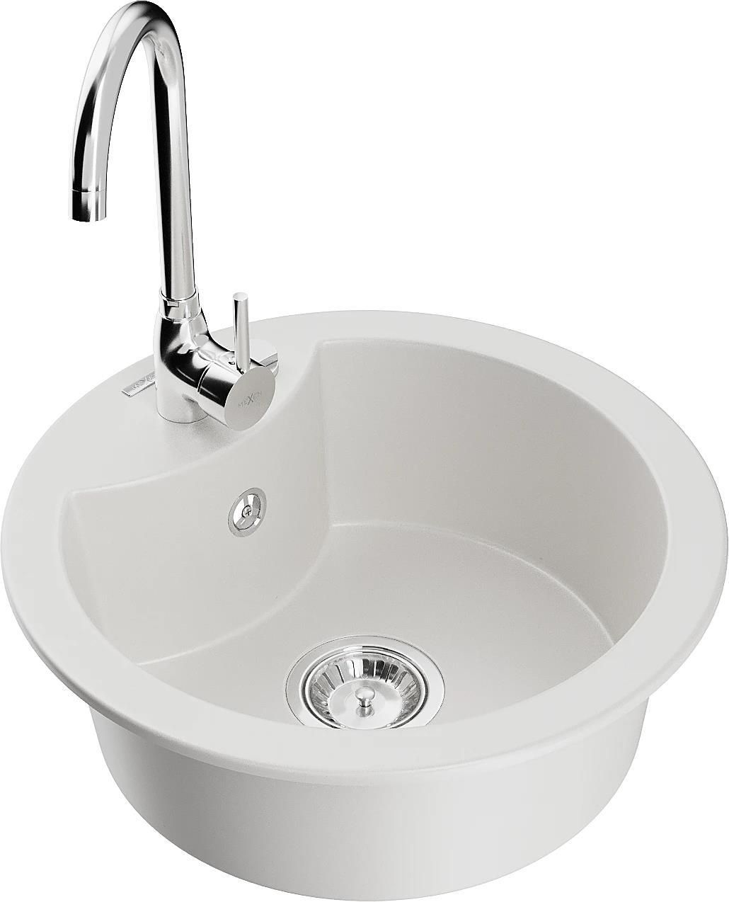 Mexen Diego zlewozmywak granitowy 1-komorowy, biały + bateria kuchenna Telma, chrom + syfon automatyczny, chrom Producent: Mexen Seria: Diego + Telma Kod produktu: 6512-20-670200-00 ZLEWOZMYWAK Kod produktu: 6512481000-20 Rozmiar: 488x488x167 mm Głębokość komory: 157 mm Szerokość komory: 406 mm Średnica odpływu: ø90 mm Typ: 1-komorowy Rodzaj: Wpuszczany w blat Kolor: Biały Wykończenie syfonu: Chrom Materiał: Granit (80% kruszywo granitowe 20% żywice) Otwór przelewowy: Tak Otwory: ( bateria, automat ) 2 Wysoka odporność na zarysowania i przebarwienia Odporność na szok termiczny Powierzchnia ułatwiająca czyszczenie Jeden dodatkowy podfrezowany otwór do samodzielnego wybicia ø35 BATERIA KUCHENNA Kod produktu: 670200-00 Materiał: Mosiądz Kolor: Chrom Głowica: Ceramiczna Perlator: Tak Wysokość baterii: 335 mm Zasięg wylewki: 180 mm W komplecie syfon automatyczny Przeznaczenie: Zlewozmywaki granitowe Konfiguracja: 1 komora Otwór odpływowy: 3,5”; fi=90 mm Korek: 1 - automatyczny Możliwość podłączenia zmywarki/pralki - Tak Korek przelewowy - Tak