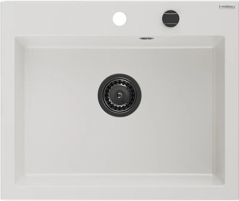 Mexen Elix zlewozmywak granitowy 1-komorowy, biały + syfon automatyczny, czarny Producent: Mexen Seria: Elix Kod produktu: 6525601005-20-B Dane techniczne Rozmiar: 600x500x210 mm Głębokość komory: 195 mm Wymiary komory: 530x380 mm Średnica odpływu: ø90 mm Typ: 1-komorowy Rodzaj: Wpuszczany w blat Kolor: Biały Wykończenie syfonu: Czarny Materiał: Granit (80% kruszywo granitowe, 20% żywice) Otwór przelewowy: Tak Otwory: (bateria, automat) 2 Wysoka odporność na zarysowania i przebarwienia Odporność na szok termiczny Powierzchnia ułatwiająca czyszczenie Jeden dodatkowy podfrezowany otwór do samodzielnego wybicia ø35 Model dostępny w 7 kolorach na innych naszych aukcjach W komplecie syfon automatyczny Przeznaczenie: Zlewozmywaki granitowe Konfiguracja: 1 komora Otwór odpływowy: 3,5”; fi=90 mm Korek: 1 - automatyczny Możliwość podłączenia zmywarki/pralki - Tak Korek przelewowy - Tak KOLOR: BIAŁY KOLOR: BEŻOWY KOLOR: SZARY KOLOR: CZARNY / SREBRNY METALIK KOLOR: CZARNY / ZŁOTY METALIK KOLOR: CZARNY NAKRAPIANY KOLOR: CZARNY