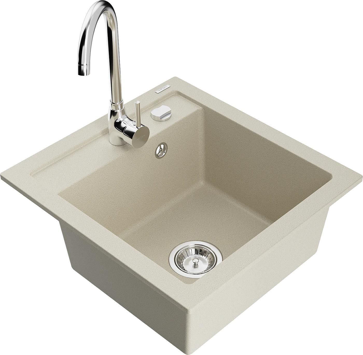 Mexen Vito zlewozmywak granitowy 1-komorowy z baterią kuchenną Telma, beżowy - 6503-69-670200-00 Dane produktu Producent: Mexen Nr katalogowy: 6503-69-670200-00 Kod EAN: 5905315014078 Cechy produktu Seria: Vito Dłuższy bok: 520 mm Krótszy bok: 490 mm Typ: Wpuszczany Kształt: Prostokątny Wyciągana wylewka: Nie Wysokość baterii: 33,5 cm Zasięg wylewki: 18 cm Możliwość podłączenia filtra wody: Nie Ilość komór: 1-komorowy Otwory: 2 Podcięcia pod otwory: 2 Ociekacz: Bez ociekacza Syfon automatyczny: Tak Przelew: Tak Kolor syfonu: Chrom Kolor zlewu: Beżowy Kolor baterii: Chrom Dane techniczne: Zlewozmywak: Rozmiar: 520x490x210 mm Głębokość komory: 200 mm Wymiary komory: 410x360 mm Średnica odpływu: ø90 mm Typ: 1-komorowy Rodzaj: Wpuszczany w blat Kolor: Beżowy Wykończenie syfonu: Chrom Materiał: Granit (80% kruszywo granitowe 20% żywice) Otwór przelewowy: Tak Otwory: ( bateria, automat ) 2 Wysoka odporność na zarysowania i przebarwienia Odporność na szok termiczny Powierzchnia ułatwiająca czyszczenie Jeden dodatkowy podfrezowany otwór do samodzielnego wybicia ø35 Bateria kuchenna: Materiał: Mosiądz Kolor: Chrom Głowica: Ceramiczna Perlator: Tak Typ: Jednouchwytowa Wysokość baterii: 335 mm Zasięg wylewki: 180 mm Jeśli dla Ciebie, tak samo jak i dla nas, wyposażenie łazienki i toalety ma być nie tylko funkcjonalne i ułatwiające życie, ale także ma stanowić ich ozdobę – koniecznie sprawdź naszą ofertę. Jeśli zgadzasz się ze stwierdzeniem, że elegancka funkcjonalność w połączeniu z nowoczesnym designem gwarantuje atrakcyjny wygląd łazienki oraz toalety na długie lata, to trafiłeś we właściwe miejsce. Witaj w świecie MEXEN!