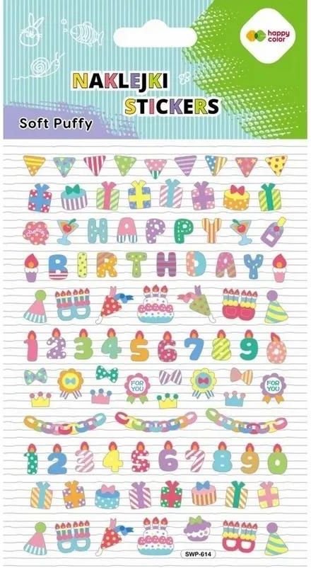 Naklejki 3D Soft Puffy Happy Birthday 110X205mm Łowicz