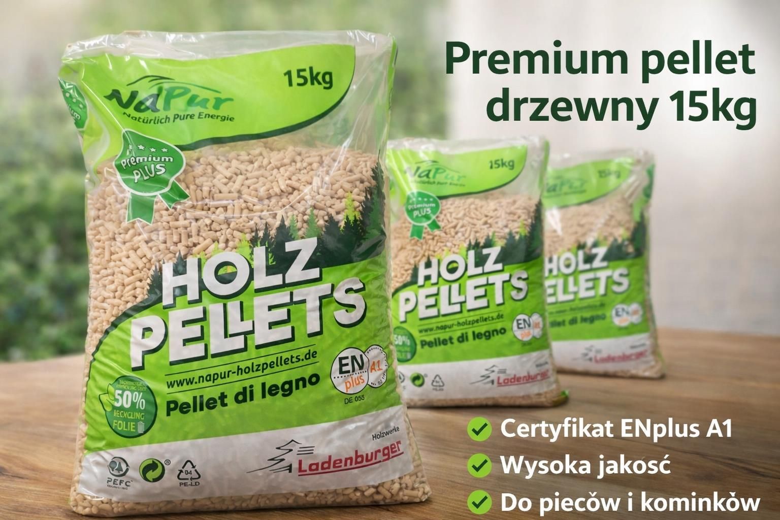 Pellet drzewny Premium ENplus A1 – 15 kg Holz Pellets NaPur Premium Plus Wysokiej jakości pellet drzewny przeznaczony do pieców, kotłów oraz kominków na pellet. Produkt certyfikowany ENplus A1, wykonany z czystego, naturalnego drewna, bez dodatków chemicznych i sztucznych lepiszczy. Idealny do codziennego ogrzewania domu – zapewnia stabilne spalanie, wysoką wydajność cieplną oraz niską ilość popiołu. Najważniejsze cechy produktu Certyfikat ENplus A1 (DE 055) Wysoka kaloryczność – ≥ 4,6 kWh/kg Niska zawartość popiołu – ≤ 0,70% Niska wilgotność – ≤ 10% Mała ilość pyłu – ≤ 0,50% Naturalne drewno – bez dodatków chemicznych Czyste i stabilne spalanie Mniej czyszczenia pieca i kominka Parametry techniczne Waga worka: 15 kg Średnica pelletu: 6 mm Długość: do 40 mm Gęstość nasypowa: 600–750 kg/m³ Temperatura topnienia popiołu: ≥ 1200°C Certyfikacja: ENplus A1 / ISO 17225-2 Producent: Ladenburger / NaPur Zastosowanie Piece na pellet, kotły pelletowe, kominki, systemy ogrzewania automatycznego, ogrzewanie domów jednorodzinnych i budynków użytkowych. Ekologia Pellet produkowany z odnawialnych surowców drzewnych, w ekologicznych opakowaniach (50% folii z recyklingu). Przyjazny dla środowiska i bezpieczny dla instalacji grzewczych. Dlaczego warto? Bo to pellet klasy premium – stabilne spalanie, wysoka wydajność, czystość w kotle i realna oszczędność w sezonie grzewczym. Pellet dostępny również na palety.