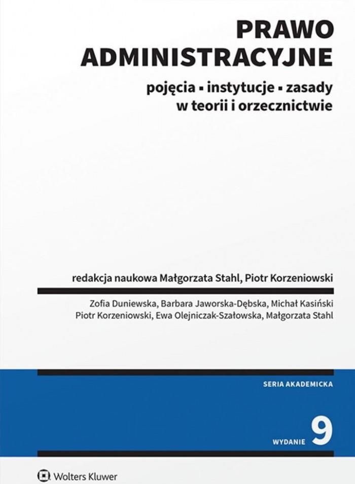 Książka stanowi naukowe opracowanie najważniejszych zagadnień teorii prawa administracyjnego i ustrojowego.Omawia pojęcia prawa administracyjnego oraz jego zasady ogólne, w tym m.in.: • pojęcie administracji i prawa administracyjnego, władztwa administracyjnego, władzy dyskrecjonalnej, publicznych praw podmiotowych sankcji, dóbr publicznych • zasady: demokratycznego państwa prawnego, ochrony godności człowieka, legalności, proporcjonalności, jawności, dobrej administracji, • źródła prawa administracyjnego i jego wykładnię.W podręczniku przedstawiono także zagadnienia ustroju administracji rządowej, centralnej i terenowej oraz samorządu terytorialnego, system podmiotów administrujących i powiązania między nimi, prawne formy działania administracji publicznej oraz kontrolę jej działalności. Najważniejsze zagadnienia zostały uzupełnione o ilustrujące je wypisy z literatury i orzecznictwo. Książka przeznaczona jest dla studentów prawa, administracji, ekonomii, zarządzania, socjologii i innych kierunków, w ramach których prowadzi się zajęcia z określonych dziedzin prawa, np. prawa ochrony środowiska, prawa oświatowego, prawa ochrony zdrowia i pomocy społecznej. Autorami podręcznika są profesorowie Wydziału Prawa i Administracji Uniwersytetu Łódzkiego, wykładający w Katedrze Prawa Administracyjnego i Nauki Administracji. Prawo administracyjne. Pojęcia, instytucje, zasady w teorii i orzecznictwie Publikacja ta stanowi kompleksowe kompendium wiedzy na temat prawa administracyjnego, obejmujące kluczowe pojęcia, instytucje oraz zasady, które są niezbędne do zrozumienia tej dziedziny prawa. Książka jest doskonałym źródłem zarówno dla studentów, jak i praktyków prawa, oferując wnikliwą analizę oraz odniesienia do aktualnego orzecznictwa. Dla kogo jest ta książka? Studenci prawa i administracji Praktykujący prawnicy specjalizujący się w prawie administracyjnym Osoby zainteresowane tematyką administracji publicznej Wykładowcy akademiccy i badacze prawa Co zyskasz dzięki tej publikacji? Kompleksowa wiedza: Zdobądź szczegółowe informacje na temat kluczowych pojęć i instytucji prawa administracyjnego. Praktyczne zastosowanie: Zrozum zasady funkcjonowania administracji publicznej w kontekście aktualnych przepisów i orzecznictwa. Wnikliwa analiza: Poznaj różnorodne aspekty prawa administracyjnego, które są istotne w praktyce prawniczej. Aktualność: Korzystaj z odniesień do najnowszych orzeczeń sądowych, które ilustrują zastosowanie teorii w praktyce. Kluczowe tematy i obszary Pojęcia prawa administracyjnego Instytucje administracji publicznej Zasady działania administracji Orzecznictwo w prawie administracyjnym Teoria i praktyka prawa administracyjnego O Autorach Małgorzata Stahl, Michał Kasiński, Piotr Korzeniowski, Barbara Jaworska-Dębska, Ewa Olejniczak-Szałowska, Zofia Duniewska – zespół doświadczonych ekspertów w dziedzinie prawa administracyjnego, którzy łączą wiedzę teoretyczną z praktycznym doświadczeniem, co czyni tę publikację wartościowym źródłem informacji. O Wydawcy Wolters Kluwer Polska – renomowane wydawnictwo specjalizujące się w publikacjach prawniczych, oferujące wysokiej jakości materiały edukacyjne dla prawników, studentów oraz instytucji. Producent/osoba odpowiedzialna za bezpieczeństwo produktuWolters Kluwer Polska Sp. Z o.o.Przyokopowa 1301-208 WarszawaPL-obsluga.klienta@wolterskluwer.com801044545