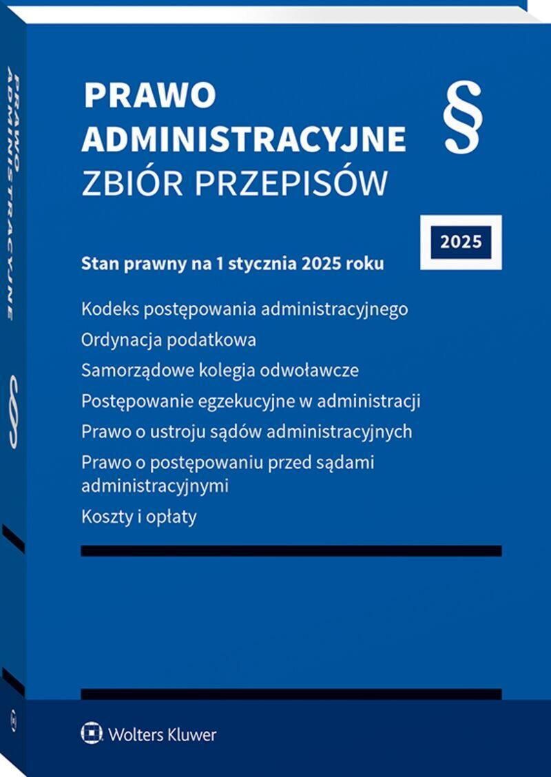 Zbiór obejmuje zmiany wynikające z ustaw opublikowanych do 7 stycznia 2025 r., w tym m.in.: Ordynacja podatkowa: • ustawa z 6 listopada 2024 r. o opodatkowaniu wyrównawczym jednostek składowych grup międzynarodowych i krajowych (Dz.U. poz. 1685) • ustawa z 27 listopada 2024 r. o zmianie ustawy o środkach nadzwyczajnych mających na celu ograniczenie wysokości cen energii elektrycznej oraz wsparciu niektórych odbiorców w 2023 roku oraz w 2024 roku oraz niektórych innych ustaw (Dz.U. poz. 1831) Postępowanie egzekucyjne w administracji: • ustawa z 1 października 2024 r. o zmianie ustawy o szczególnych rozwiązaniach związanych z usuwaniem skutków powodzi oraz niektórych innych ustaw (Dz.U. poz. 1473) • ustawa z 1 października 2024 r. o dochodach jednostek samorządu terytorialnego (Dz.U. poz. 1572) Prawo o postępowaniu przed sądami administracyjnymi: • ustawa z 6 listopada 2024 r. o opodatkowaniu wyrównawczym jednostek składowych grup międzynarodowych i krajowych (Dz.U. poz. 1685) Wykaz wszystkich zmian zamieszczono przed spisem treści. Ordynacja podatkowa 20 listopada 2024 r.; 1 stycznia 2025 r. – ustawa z 6 listopada 2024 r. o opodatkowaniu wyrównawczym jednostek składowych grup międzynarodowych i krajowych (Dz.U. poz. 1685) 12 grudnia 2024 r. – ustawa z 27 listopada 2024 r. o zmianie ustawy o środkach nadzwyczajnych mających na celu ograniczenie wysokości cen energii elektrycznej oraz wsparciu niektórych odbiorców w 2023 roku oraz w 2024 roku oraz niektórych innych ustaw (Dz.U. poz. 1831) 1 stycznia 2025 r. – obwieszczenie Ministra Finansów z 7 sierpnia 2024 r. w sprawie wysokości kwoty wymienionej w art. 262 § 1 ustawy – Ordynacja podatkowa na rok 2025 (M.P. poz. 744) 1 stycznia 2025 r. – obwieszczenie Ministra Finansów z 7 sierpnia 2024 r. w sprawie wysokości kwoty wymienionej w art. 41 § 1 ustawy – Ordynacja podatkowa na rok 2025 (M.P. poz. 745) 1 lutego 2026 r. – ustawa z 16 czerwca 2023 r. o zmianie ustawy o podatku od towarów i usług oraz niektórych innych ustaw (Dz.U. poz. 1598) POSTĘPOWANIE EGZEKUCYJNE W ADMINISTRACJI 1 października 2024 r. – ustawa z 15 maja 2024 r. o wspieraniu rodziców w aktywności zawodowej oraz w wychowaniu dziecka – „Aktywny rodzic” (Dz.U. poz. 858) 5 października 2024 r. – ustawa z 1 października 2024 r. o zmianie ustawy o szczególnych rozwiązaniach związanych z usuwaniem skutków powodzi oraz niektórych innych ustaw (Dz.U. poz. 1473) 25 października 2024 r. – ustawa z 1 października 2024 r. o dochodach jednostek samorządu terytorialnego (Dz.U. poz. 1572) 10 listopada 2024 r. – ustawa z 12 lipca 2024 r. – Przepisy wprowadzające ustawę – Prawo komunikacji elektronicznej (Dz.U. poz. 1222) 1 stycznia 2025 r. – ustawa z 27 września 2024 r. o zmianie ustawy o rencie socjalnej oraz niektórych innych ustaw (Dz.U. poz. 1615) 1 stycznia 2025 r. – ustawa z 5 grudnia 2024 r. o zmianie ustawy o Funduszu Ochrony Rolnictwa oraz niektórych innych ustaw (Dz.U. poz. 1964) PRAWO O USTROJU SĄDÓW ADMINISTRACYJNYCH 21 sierpnia 2024 r. – obwieszczenie Marszałka Sejmu Rzeczypospolitej Polskiej z 19 sierpnia 2024 r. w sprawie ogłoszenia jednolitego tekstu ustawy – Prawo o ustroju sądów administracyjnych (Dz.U. poz. 1267) PRAWO O POSTĘPOWANIU PRZED SĄDAMI ADMINISTRACYJNYMI 1 stycznia 2025 r. – ustawa z 6 listopada 2024 r. o opodatkowaniu wyrównawczym jednostek składowych grup międzynarodowych i krajowych (Dz.U. poz. 1685) 1 października 2029 r. – ustawa z 18 listopada 2020 r. o doręczeniach elektronicznych (Dz.U. z 2024 r. poz. 1045) 1 października 2029 r. – ustawa z 7 lipca 2023 r. o zmianie ustawy – Kodeks postępowania cywilnego, ustawy – Prawo o ustroju sądów powszechnych, ustawy – Kodeks postępowania karnego oraz niektórych innych ustaw (Dz.U. poz. 1860) OPŁATY ZA CZYNNOŚCI ADWOKACKIE 31 grudnia 2024 r. – rozporządzenie Ministra Sprawiedliwości z 23 grudnia 2024 r. zmieniające rozporządzenie w sprawie opłat za czynności adwokackie (Dz.U. poz. 1949) OPŁATY ZA CZYNNOŚCI RADCÓW PRAWNYCH 31 grudnia 2024 r. – rozporządzenie Ministra Sprawiedliwości z 23 grudnia 2024 r. zmieniające rozporządzenie w sprawie opłat za czynności radców prawnych (Dz.U. poz. 1947)