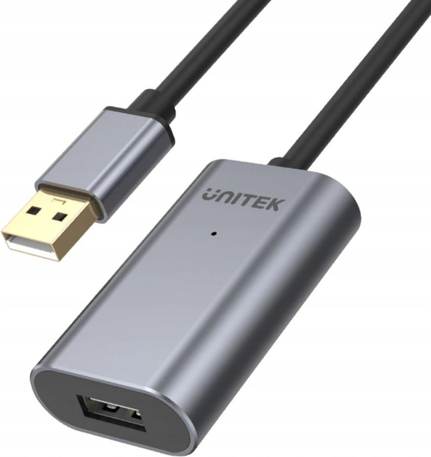 Podłącz urządzenie USB oddalone o 10 metrów Aktywny przedłużacz marki Unitek pozwala podłączyć urządzenie z komputerem oddalonym o nawet 20 metrów. Utrzymanie sygnału na takiej odległości jest możliwe dzięki wbudowanym w kabel wzmacniaczom i najlepszym materiałom: żyły ze 100% miedzi, chipsety premium FE1.1s i pozłacane końcówki. Różnorodność zastosowań Aktywny przedłużacz USB często wykorzystuje się do uzyskania lepszego sygnału LTE lub DVB-T. Notebook czy komputer zazwyczaj trzymamy przy biurku, z dala od okno, a to przecież tam jest najlepszy zasięg bezprzewodowego Internetu. Umieszczając modem przy oknie możemy korzystać z lepszej prędkości a do podłączenia użyć przedłużacza USB. Możliwość zastosowań jest jednak nieograniczona, możemy podłączyć każde urządzenie USB (kompatybilny z USB 1.1; 2.0; 3.1) drukarkę, czytnik kodów kreskowych, kamerę czy tablicę multimedialną. Dodatkowe zasilanie Kompatybilność ze standardem USB 2.0 umożliwia transfer z prędkością do 480 Mbps. Wzmacniacz ma wejście na dodatkowe zasilanie, na wypadek gdyby prąd z gniazda USB nie był wystarczający. Do większości zastosowań, gdzie pobór mocy jest niewielki dodatkowe zasilanie nie będzie jednak konieczne. Przewód jest stosunkowo cienki i giętki, należy jednak pamiętać, że na końcu znajduje się kostka wzmacniająca. *brak zasilacza w zestawie Zasilacz i przewód można zakupić osobno: Unitek kabel zasilający USB - wtyk DC 3.5/1.35 mm Unitek Zasilacz 5V 2A