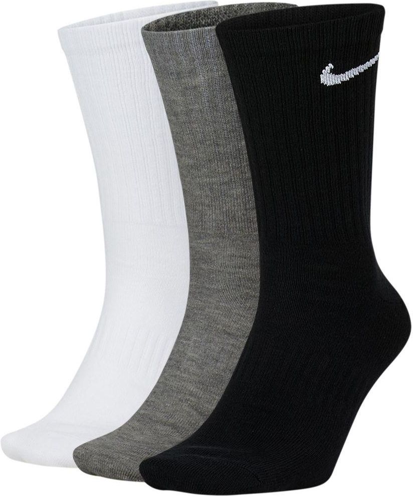 Nike Everyday Lightweight Crew Socks 3Pak Właściwości skarpety Nike trzy pary ściągacz na poziomie stopy zapobiega przesuwaniu się skarpety wykonane w technologii Dri Fit - termoaktywne, oddające pot na zewnątrz skład : 60% bawełna / 37% poliester / 3% elastan kolor : czarny / szary / biały Ćwicz w skarpetach treningowych Nike Everyday Lightweight Crew (3 pary). Technologia odprowadzania wilgoci zapewnia wygodę i suchość, a włókna w podeszwie zwiększają tarcie, oferując lepszą przyczepność wewnątrz obuwia. Technologia Dri-FIT zapewnia suchość i wygodę. Włókna w podeszwie zwiększają tarcie, oferując lepszą przyczepność wewnątrz obuwia. Anatomiczny krój lewej i prawej skarpety gwarantuje naturalne dopasowanie. Długość 1/3 zapewnia większą osłonę wokół kostki i łydki.