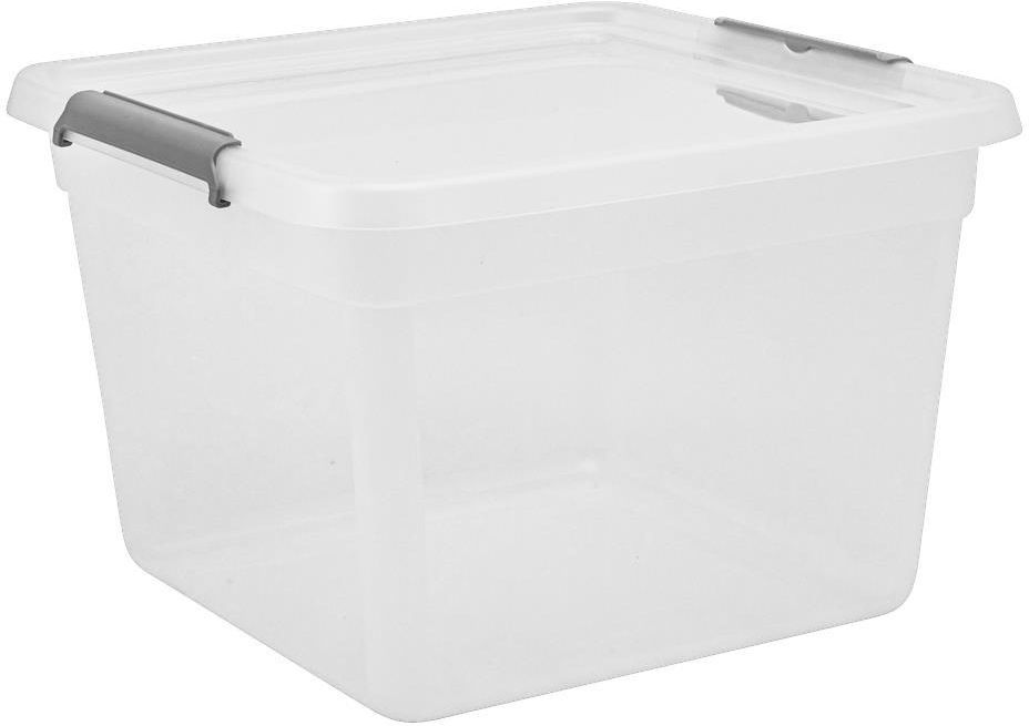 Przezroczysty pojemnik do przechowywania z kółkami. Pokrywa jest zamykana na mocne zatrzaski. Polipropylen zatwierdzony do kontaktu z żywnością, przeznaczony do użytku w temperaturach od -30°C do +90°C.