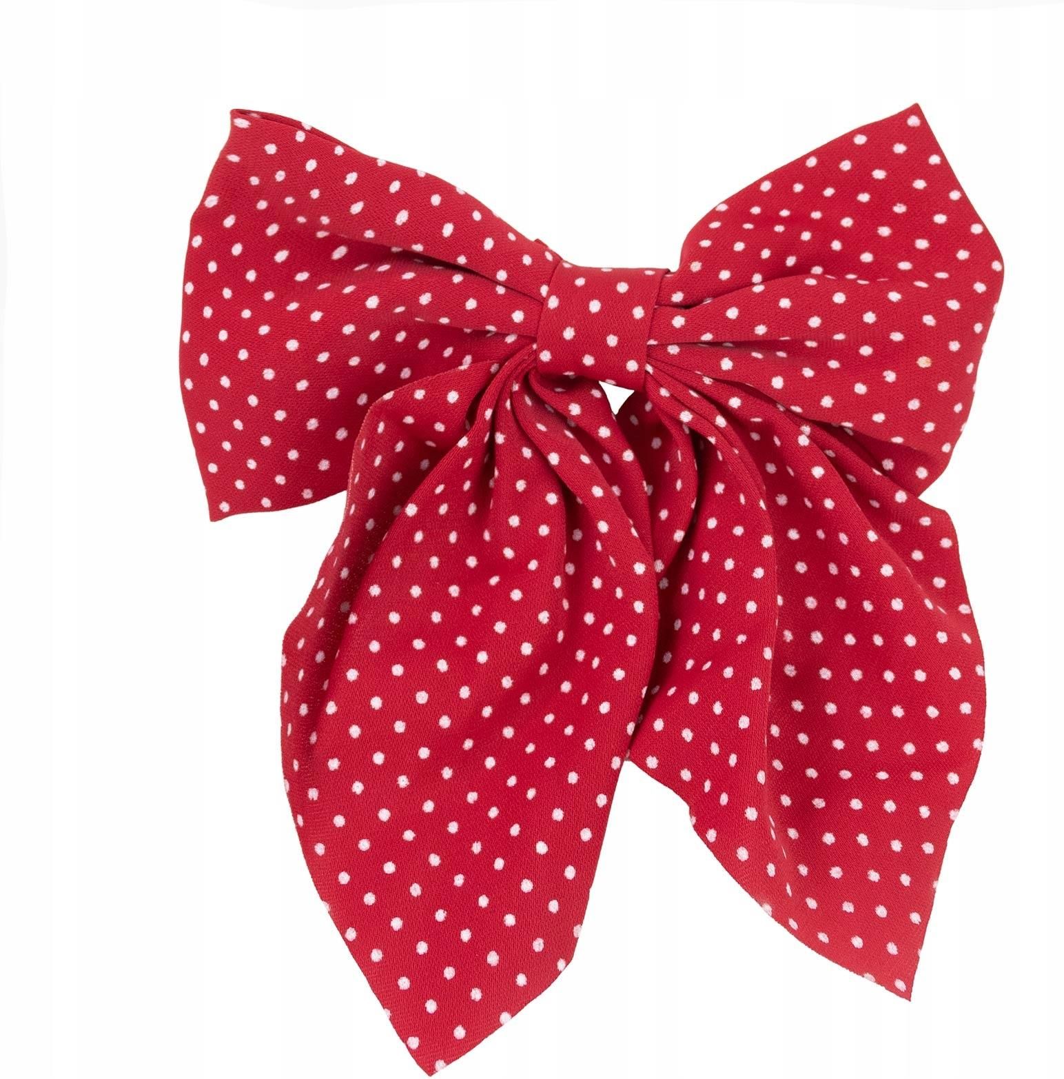 SPINKA DO WŁOSÓW kokardka do włosów elegancka modna klasyczna na klamerce - 41543 Miss Glow . Szczegóły ID Produktu: 41543 Marka: Miss Glow Długość całkowita: 13 cm Szerokość: 12,5 cm Kolor: czerwony (w białe kropki) Materiał: klamerka (krokodylek) - metal (stal), Kokarda - tkanina Rodzaj: Klamerka spinka - krokodylek