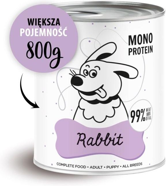 PAKA ZWIERZAKA, MOKRA KARMA DLA PSA DOROSŁEGO I SZCZENIĄT, PEPE MONOPROTEIN RABBIT, KRÓLIK, 800g Pełnoporcjowa karma dla psów w każdym wieku Monobiałkowa receptura – tylko jedno źródło białka (królik) 100% naturalnych składników – bez sztucznych dodatków i zbóż Wyjątkowa smakowitość i wysoka strawność Kompletna karma – wszystkie niezbędne składniki odżywcze w jednej puszce Paka Zwierzaka PEPE MONO PROTEIN Rabbit – Naturalna Monobiałkowa Karma Mokra z Królika 800g 99% mięsa mięśniowego, cennych podrobów i rosołu 0% zbóż, konserwantów, sztucznych barwników i wypełniaczy Zadbaj o zdrowie i dobre samopoczucie swojego psa dzięki PEPE Rabbit – pełnoporcjowej, naturalnej karmie mokrej na bazie królika. To doskonały wybór dla psów w każdym wieku, w tym także dla szczeniąt oraz psów o wrażliwym układzie pokarmowym. Monobiałkowa receptura wspiera zdrowe trawienie, odporność i ogólne samopoczucie pupila. Czysty skład, pełna wartość odżywcza. W każdej puszce znajduje się aż 99% mięsa, podrobów i esencjonalnego rosołu z królika – bez zbędnych dodatków, zbóż czy sztucznych wypełniaczy. Królik to mięso wyjątkowo delikatne i lekkostrawne, bogate w białko, witaminy z grupy B oraz żelazo. Świetnie sprawdza się w diecie eliminacyjnej i wspiera zdrowie skóry oraz sierści. Dlaczego warto wybrać Pakę Zwierzaka? Monobiałkowa receptura – tylko jedno źródło białka (królik). PEPE Rabbit opiera się wyłącznie na mięsie królika, co minimalizuje ryzyko reakcji alergicznych i nietolerancji pokarmowych. Doskonale sprawdza się u psów z alergiami, nadwrażliwością jelitową oraz podczas diet eliminacyjnych. 100% naturalnych składników – bez sztucznych dodatków i zbóż Bez zbóż, konserwantów, barwników i wzmacniaczy smaku. W składzie znajdziesz wyłącznie naturalne składniki: mięso, podroby, rosół i minerały. To czysty, transparentny skład, który spełnia oczekiwania najbardziej wymagających opiekunów. Wyjątkowa smakowitość i wysoka strawność. Mięso z królika jest delikatne, lekkostrawne i wyjątkowo smakowite. Idealne dla psów wybrednych i z wrażliwym układem pokarmowym – zapewnia uczucie sytości bez obciążania żołądka. Kompletna karma – wszystkie niezbędne składniki odżywcze w jednej puszce. PEPE Rabbit to pełnoporcjowa karma mokra, która dostarcza wszystkich niezbędnych składników: białka, tłuszczów, witamin i minerałów. Gotowy, zbilansowany posiłek, który możesz serwować swojemu psu każdego dnia – bez potrzeby dodatkowej suplementacji. Skład: Królik 99% (w tym 50% mięso, 21% podroby, 28% rosół), minerały 1% Analiza: białko 7,5%, tłuszcz 4,4%, surowy popiół 1,5%, surowe włókno 0,7%, wilgotność 85,4%, wapń 0,3%, fosfor 0,2% Energia metaboliczna: 154 kcal/100 g Dziękujemy za zapoznanie się z naszą ofertą! Jeżeli jesteś zainteresowany/a poznaniem naszych propozycji dla wszystkich pupili, zachęcamy do sprawdzenia pozostałych aukcji. Serdecznie zapraszamy!