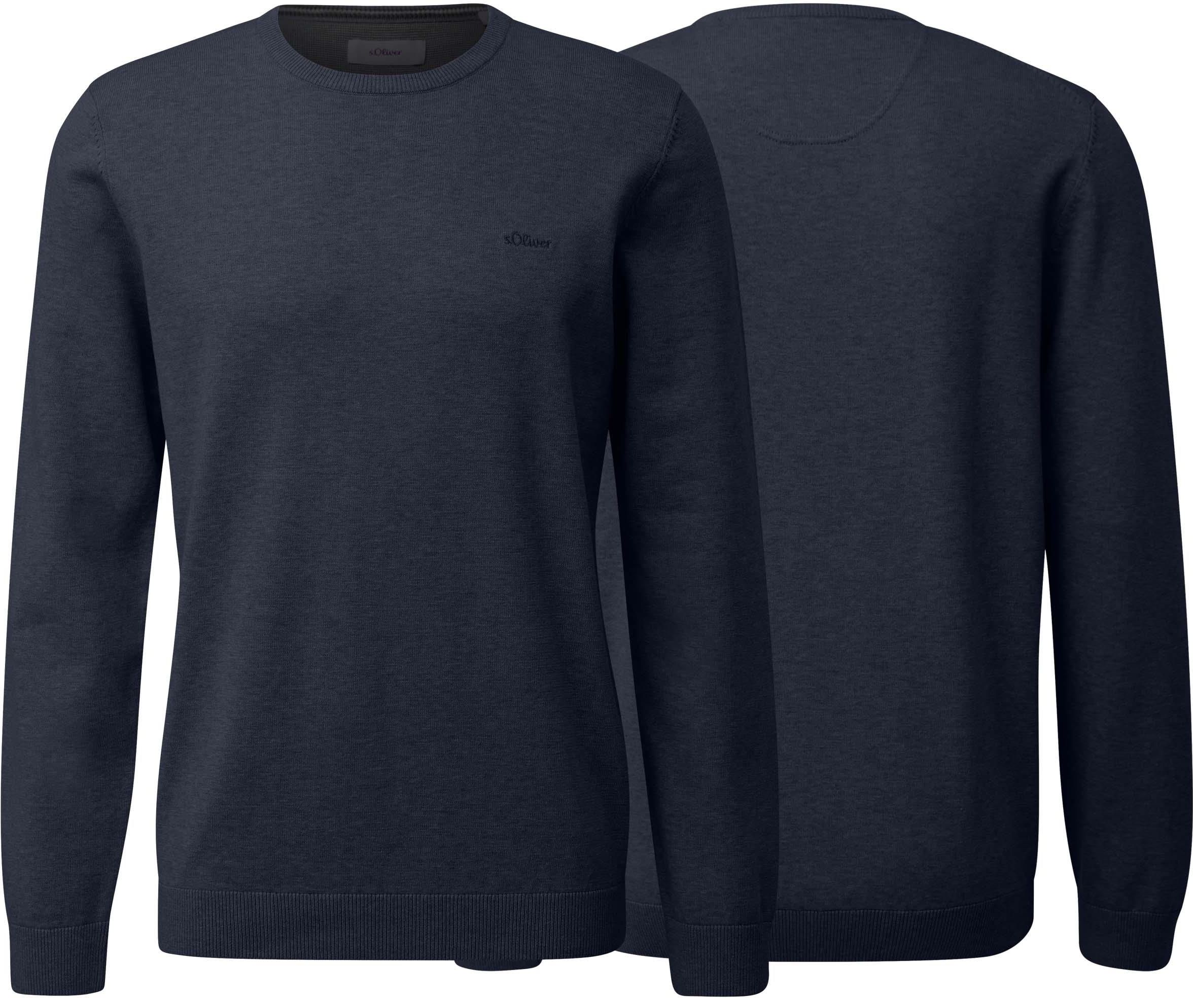 Sweter męski s.Oliver granatowy - XXLInformacje o produkcie: Sweter męski s.Oliver kolor: granatowy wzór: melanż dekolt: ogrągły z prążkowana lamówką logo Dopasowanie: Regular Fit Materiał: 100% bawełna