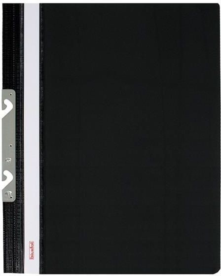 Skoroszyt z metalową zawieszką PVC BIURFOL x10 Biurfol Skoroszyt z metalową zawieszką ze sprężystymi zaczepami umożliwiającymi wpięcie do segregatora. Metalowa zawieszka umożliwiająca wpięcie do segregatora. W środku blaszka i wąs o długości 16,5 cm, umożliwiający wpięcie dokumentów do 2 cm. Dwa wycięcia ułatwiające wysuwanie paska i wymianę opisu. Zaokrąglone rogi obu okładek nie ranią skóry palców. Wykonany z mocnego i sztywnego PVC. Skład zestawu: 10 * SL882 etykieta opisowa: tak format papieru: A4 ilość kartek: 200 jednostka sprzedaży: kpl. kolor: czarny możliwość wpięcia do segregatora: tak rodzaj: na dokumenty rodzaj mocowania do segregatora: metalowa zawieszka rodzaj tworzywa: PVC rodzaj zamknięcia: wąsy skoroszytowe rozszerzany grzbiet: nie klasa produktu: Standard