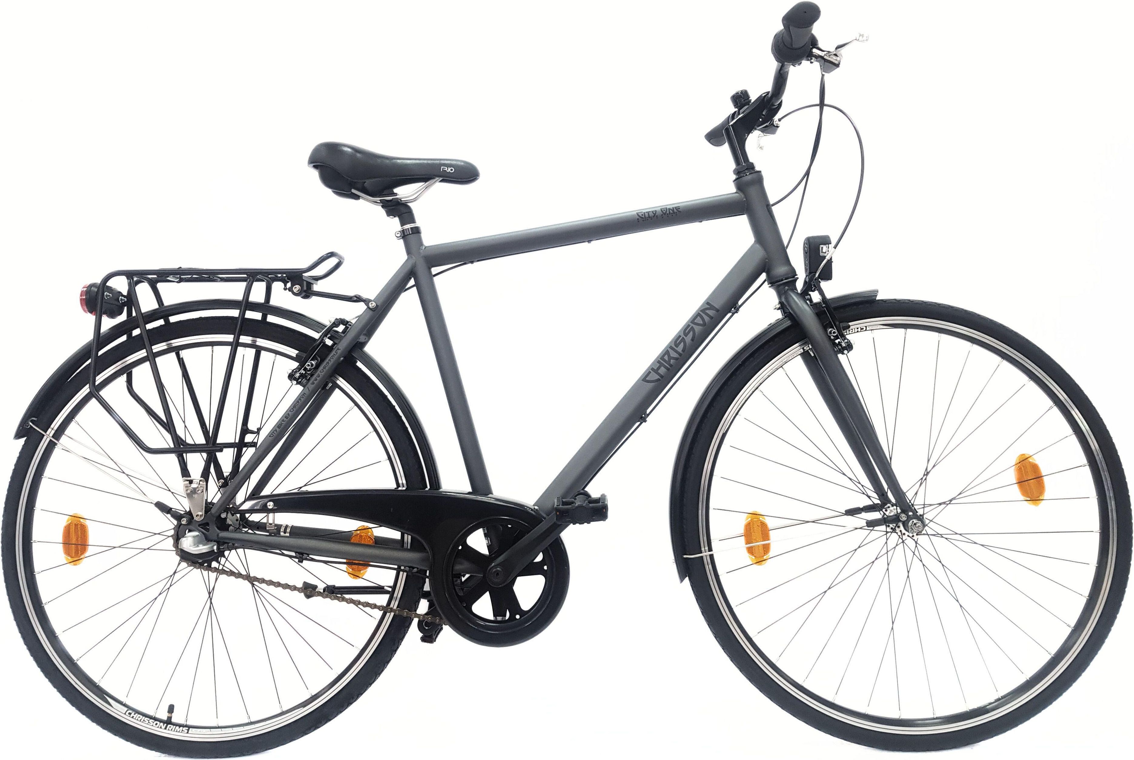 Rower miejski męski Chrisson City One, 28" Kod roweru: R-4283 Chrisson City One to idealne rozwiązanie dla osób, które chcą szybko i wygodnie przemieszczać się po mieście. Jego stalowa rama zapewnia trwałość i stabilność podczas jazdy, co sprawia, że jest doskonałym wyborem nie tylko do codziennych dojazdów do pracy, ale także do dalszych wycieczek. 3-biegowa przerzutka Shimano umożliwia płynną zmianę przełożeń, co ułatwia dostosowanie jazdy do warunków terenowych i indywidualnych preferencji. Manetka obrotowa Nexus zapewnia łatwe i precyzyjne przełączanie biegów, co ułatwia obsługę roweru. Wyposażony w hamulce V-brake i dodatkową kontrę z tyłu, zapewnia bezpieczne i skuteczne hamowanie w każdej sytuacji. Koła o średnicy 28 cali, z oponami w rozmiarze 700 x 32C, zapewniają komfort i stabilność podczas jazdy, a dodatkowo umożliwiają sprawne pokonywanie nierówności na drodze. Dodatkowo rower wyposażony jest w bagażnik, który umożliwia przewożenie drobnych rzeczy podczas jazdy. Elementy, takie jak dzwonek i światła, zwiększają bezpieczeństwo podczas nocnej jazdy oraz informują o swojej obecności innych uczestników ruchu drogowego. Chrisson City One to idealne rozwiązanie dla osób szukających wygodnego i funkcjonalnego środka transportu do codziennych dojazdów i wypraw po mieście. Chrisson City One - szybko, wygodnie, zawsze w ruchu!